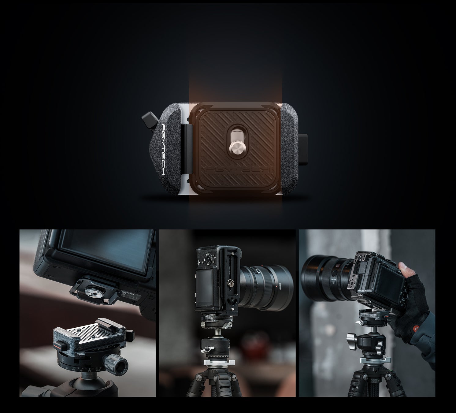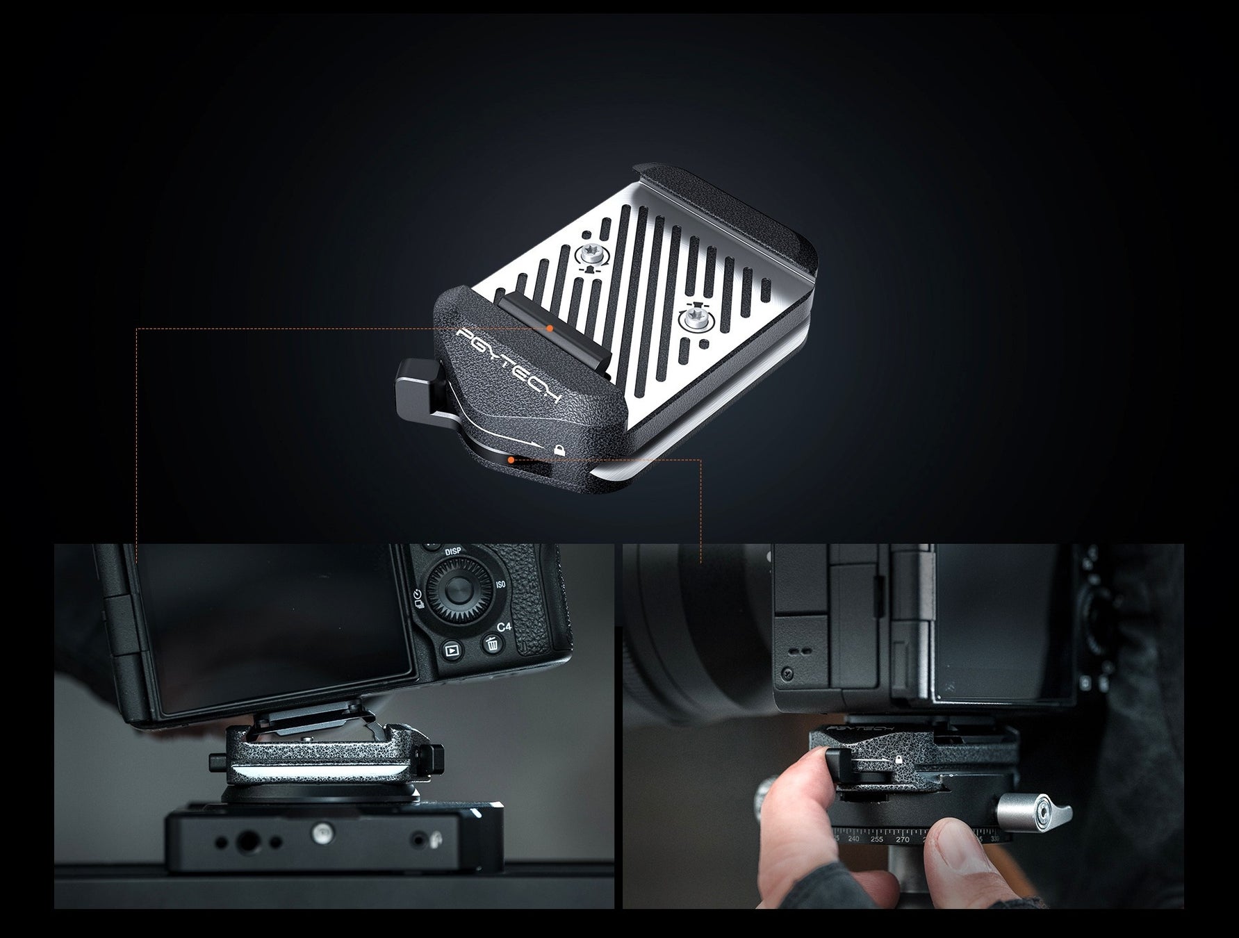 PGYTECHのアルカスイスタイプクイックリリースプレートをはじめ、Peak Designのプレート、UlanziのFalcam F38シリーズのクイックリリースプレートなどの主要ブランドに対応します。標準的なアルカスイスのサイズを採用したことにより、ほとんどのアルカスイスタイプのプレートと互換性があります。