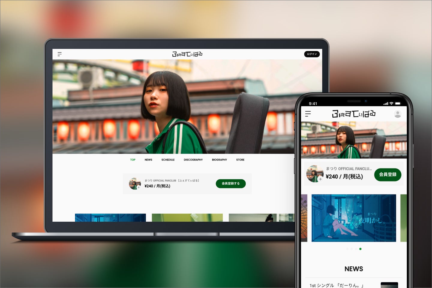 この度オープンしたのは、まつりのオフィシャルファンクラブです。当サイトの有料会員に登録いただくと、会員限定のライブ配信やオフショットの公開など、スペシャルな特典をお楽しみいただけます。