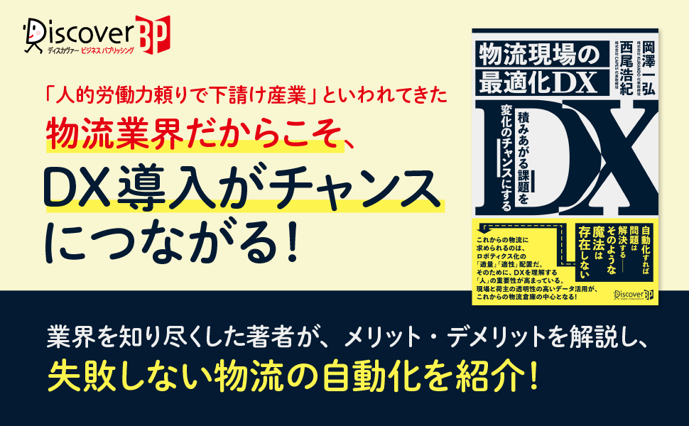 株式会社ディスカヴァー・トゥエンティワン(本社:東京都千代田区、取締役社長:谷口奈緒美)は2022年7月22日に『物流現場の最適化DX』(岡澤一弘、西尾浩紀 著)を刊行しました。本書はネット書店限定での販売です。