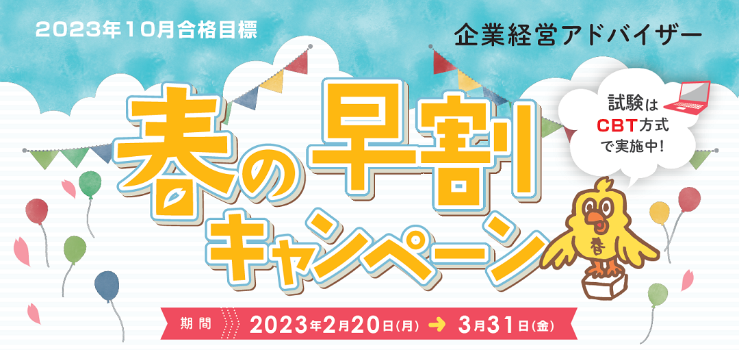 企業経営アドバイザー対策講座が10%OFFで受講できる春の早割キャンペーンを3月31日(金)まで実施します。