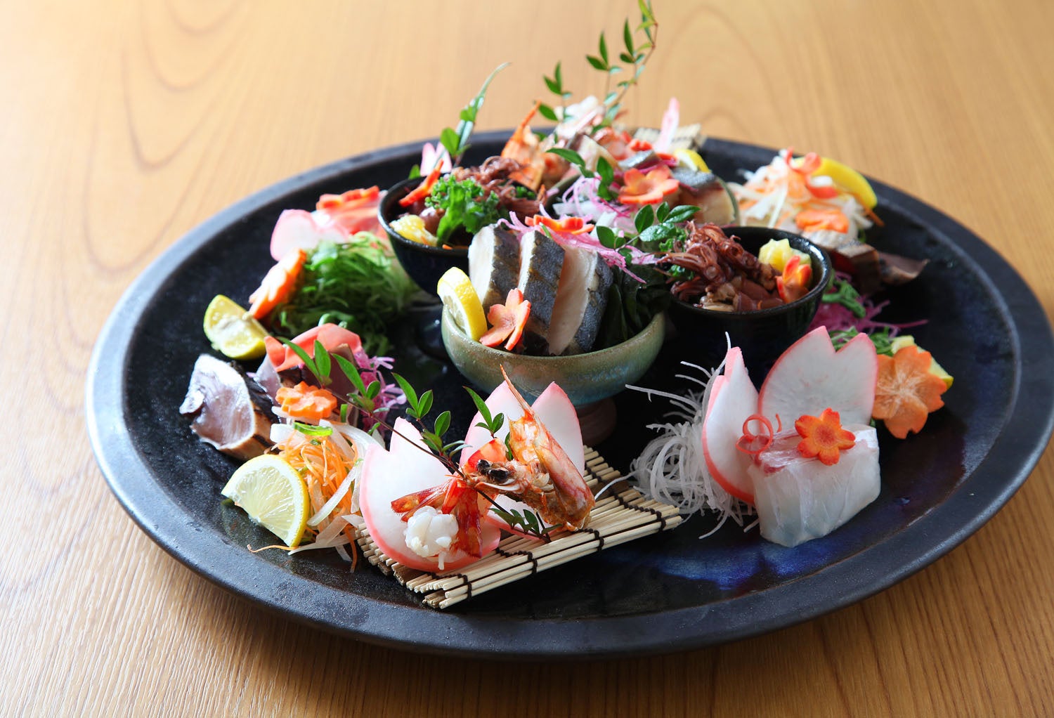 鳴門近海の魚介や徳島の地産素材をふんだんに用いた会席料理がお楽しみいただけます。山海の恵みと繊細な味わい、四季を織り込んだ美しい和食の粋をご堪能ください。