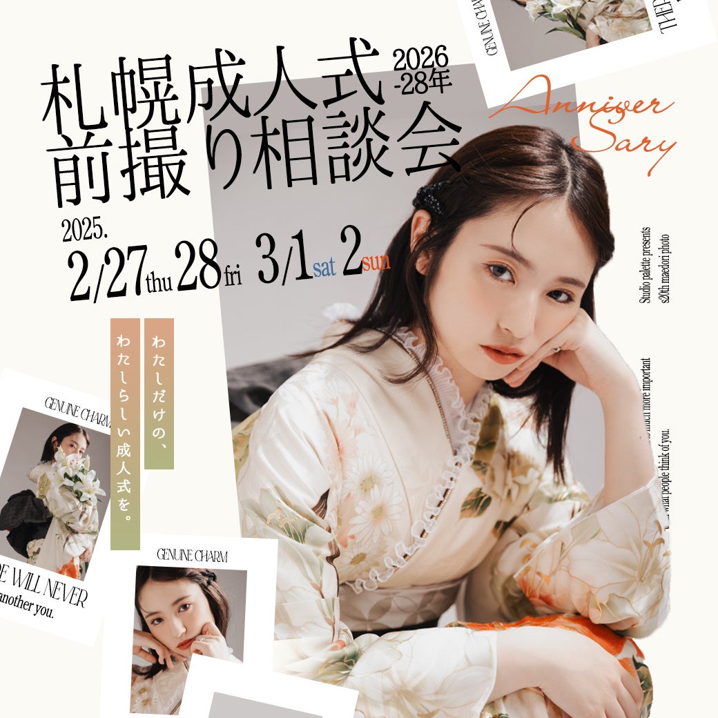 北海道のフォトスタジオ写真工房ぱれっと(本社/有限会社三景スタジオ)より、成人式には参加しない・写真だけという方に向けた「成人式前撮り相談会」を開催いたします。
