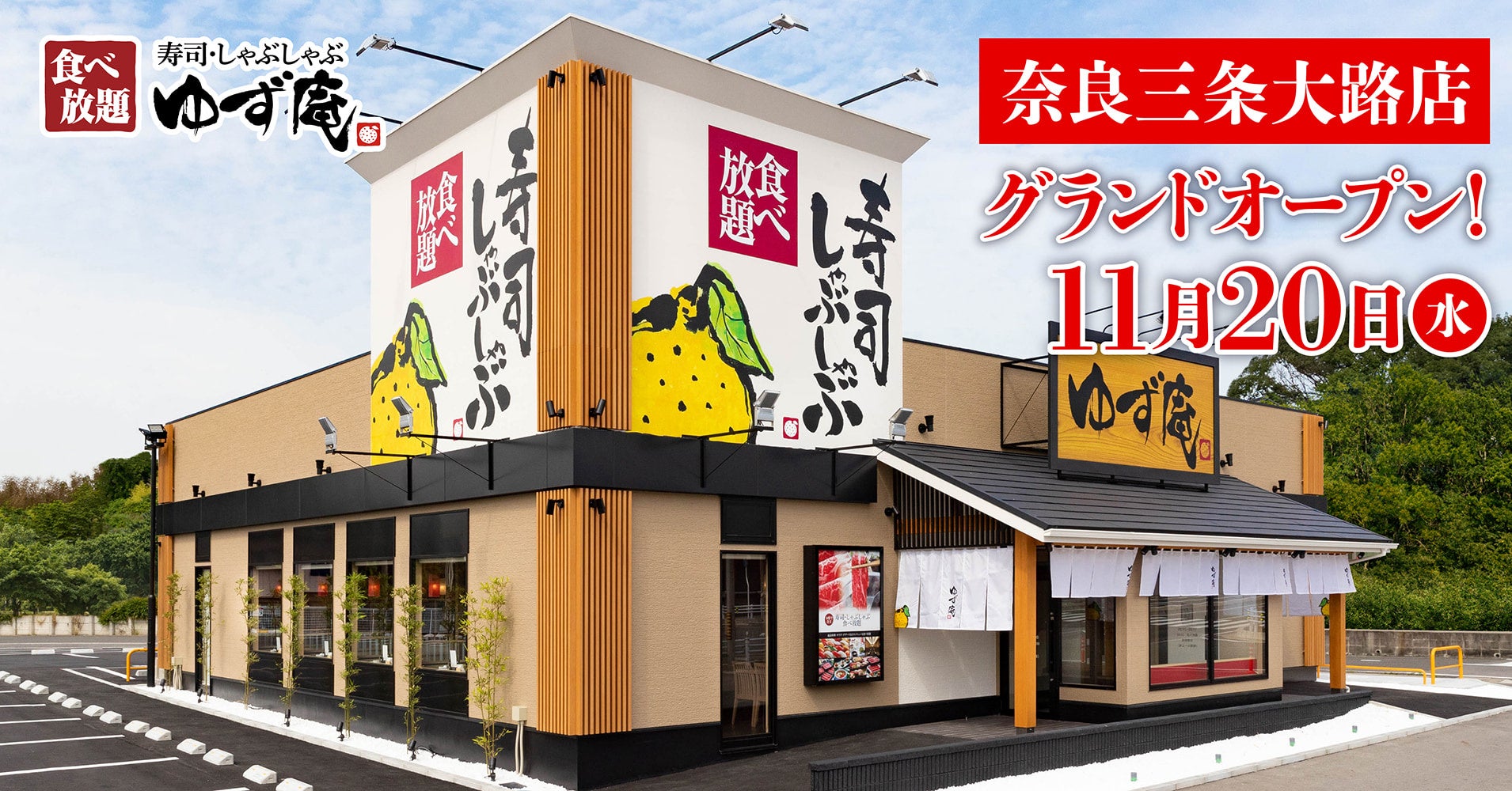 【ゆず庵】『寿司・しゃぶしゃぶ ゆず庵 奈良三条大路店』が2024年11月20日(水)にグランドオープン!