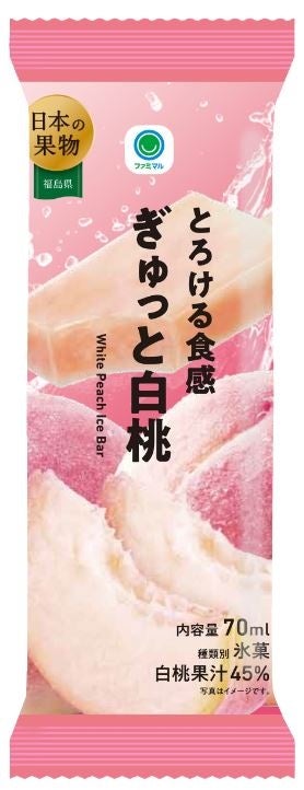 このたび、国産フルーツを使用した「アイスバー」をプライベートブランド「ファミマル」の新たなラインアップに加え、シリーズ第1弾として福島県産の白桃果汁を45%使用した果汁感あふれる商品「とろける食感 ぎゅっと白桃」を発売いたします。