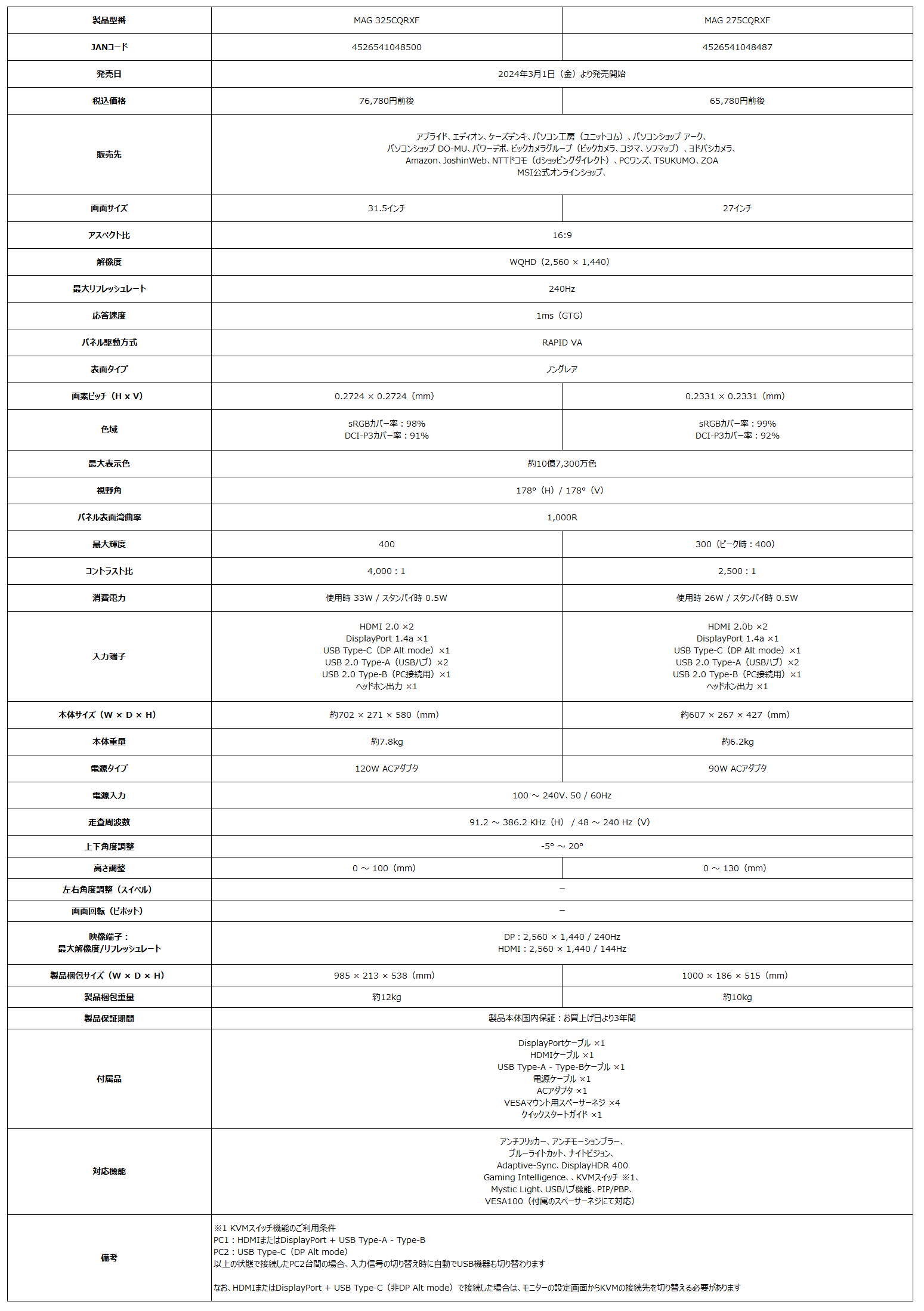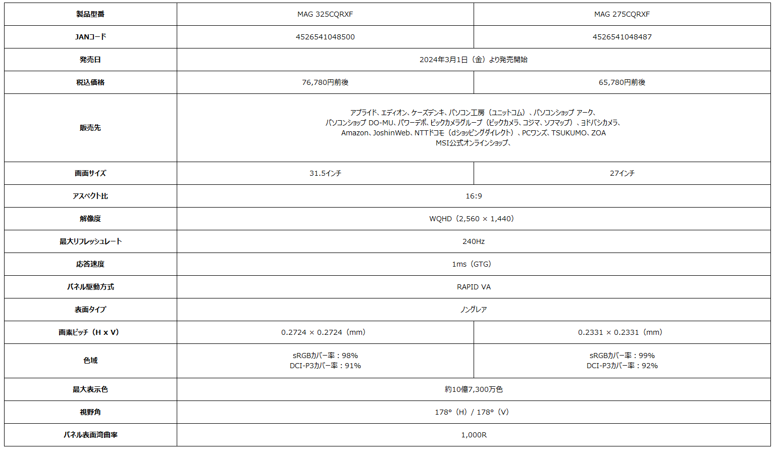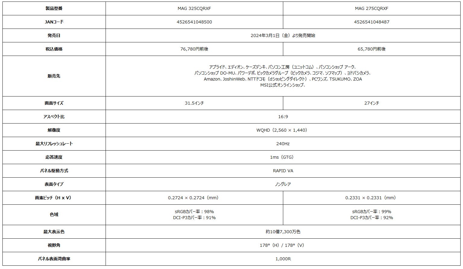 ■ MAG 325CQRXF製品ページ: https://jp.msi.com/Monitor/MAG-325CQRXF