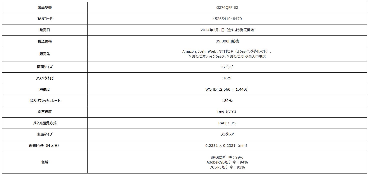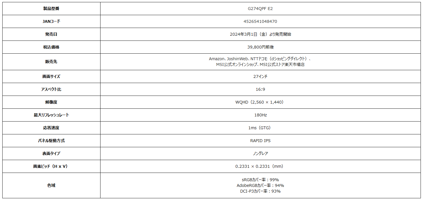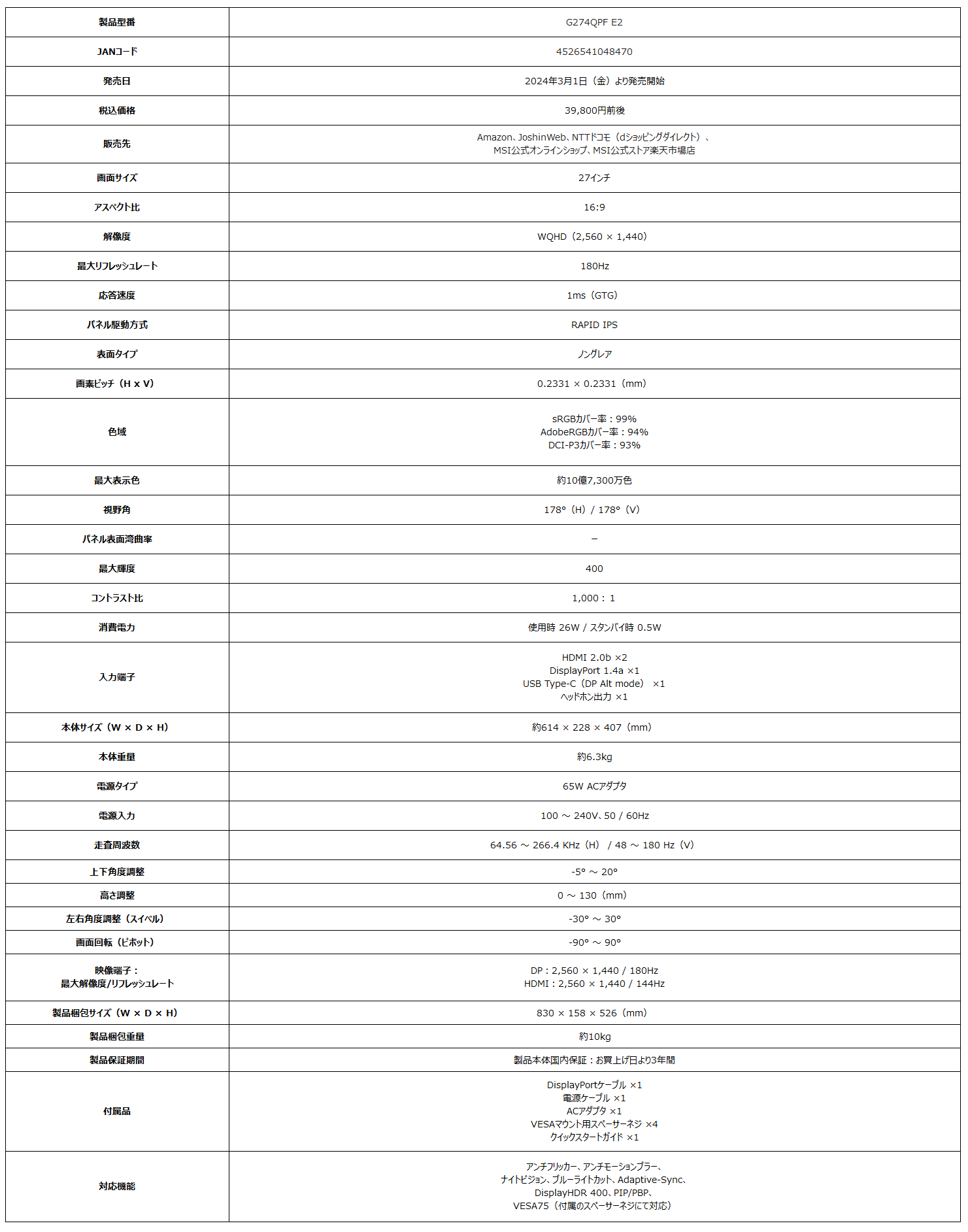 ■G274QPF E2製品ページ: https://jp.msi.com/Monitor/G274QPF-E2