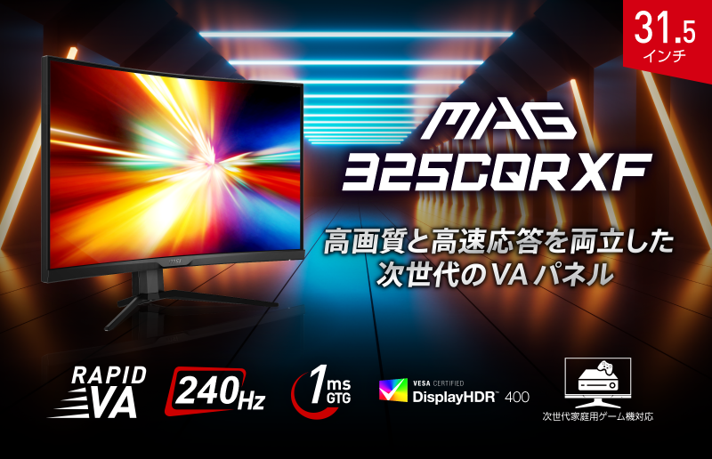 高コントラスト・高速応答対応RAPID VAパネル搭載ゲーミングモニター31.5インチ・WQHD・240Hz・1ms(GTG)の高スペックモデル「MAG 325CQRXF」発売