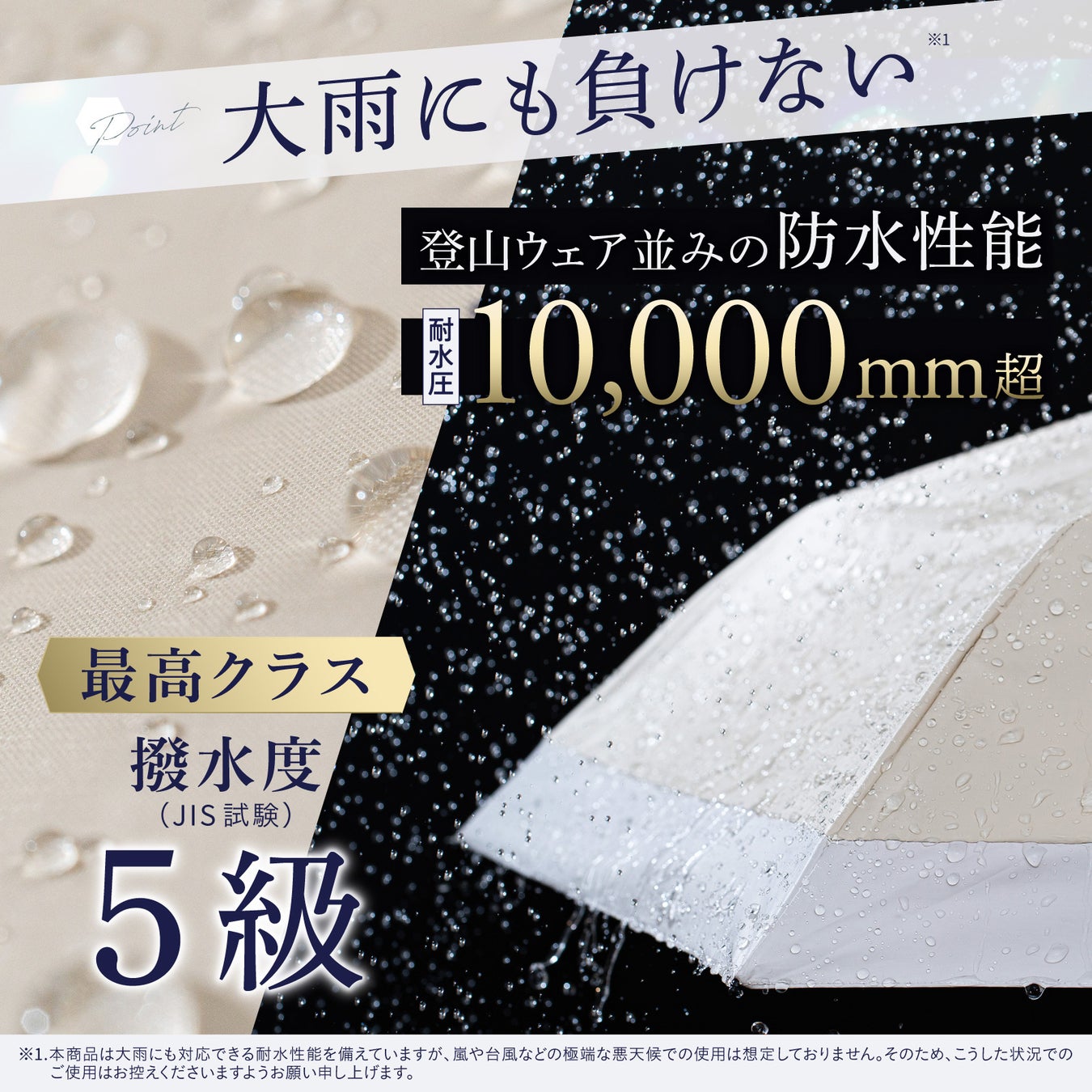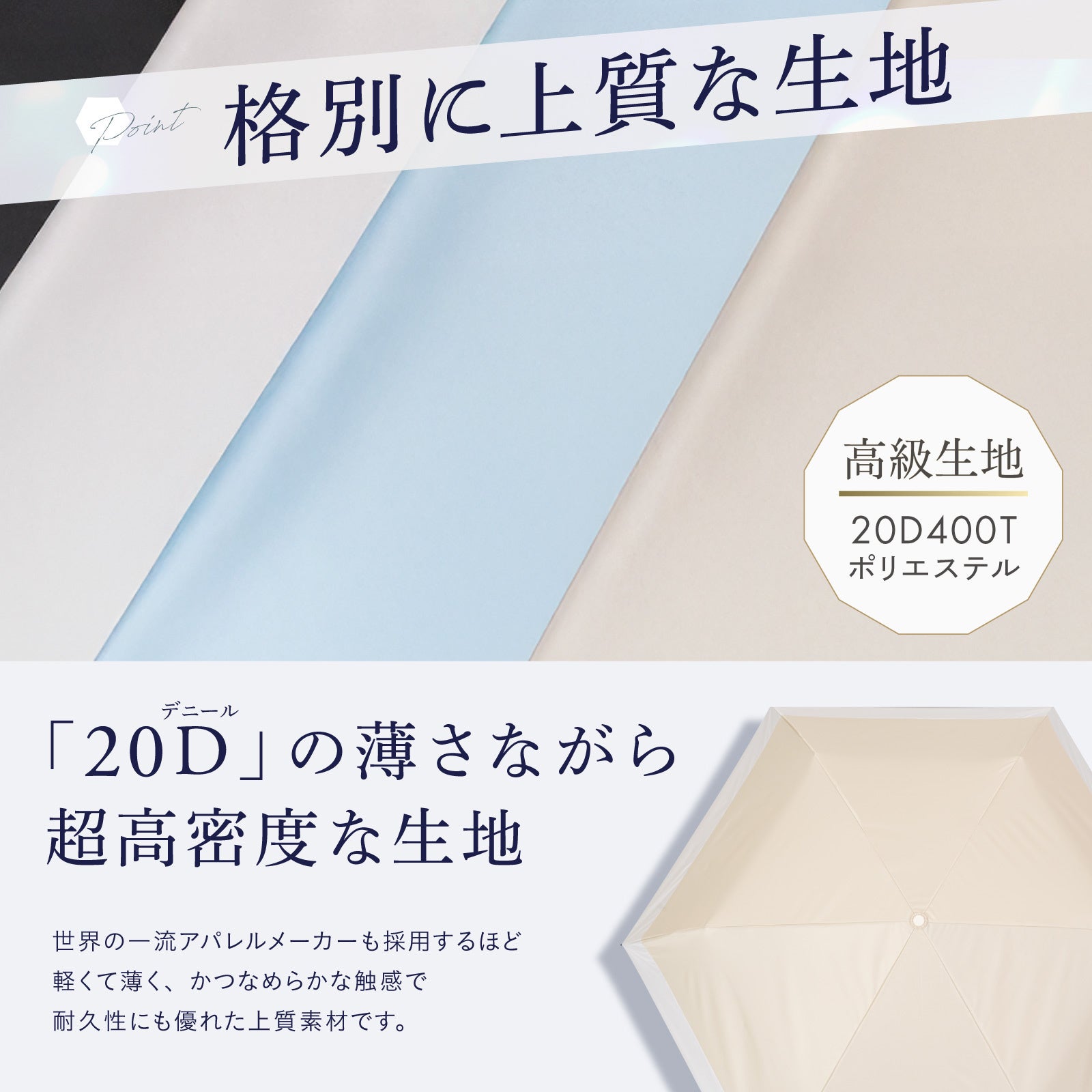 特徴:UVカット100%、完全遮光、軽量設計、吸水傘カバー付属