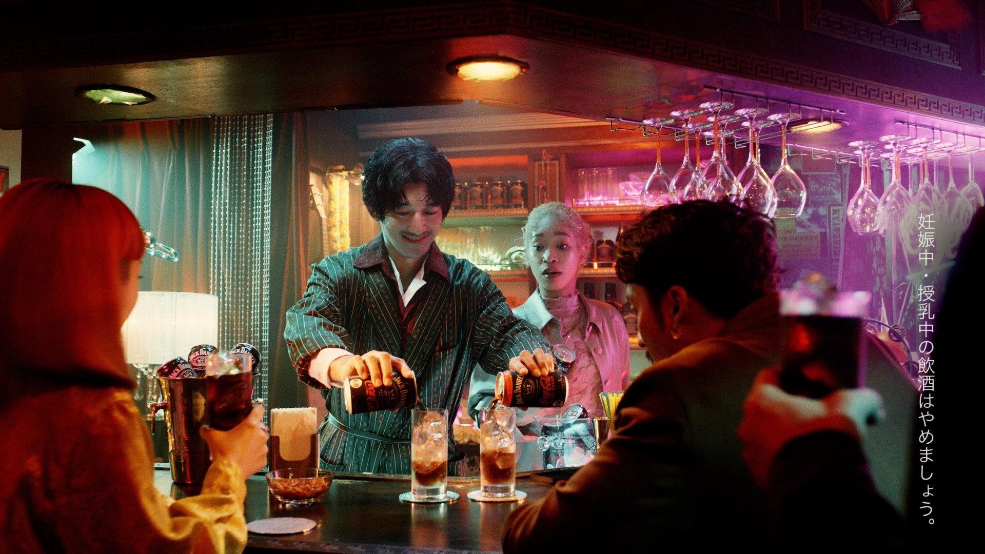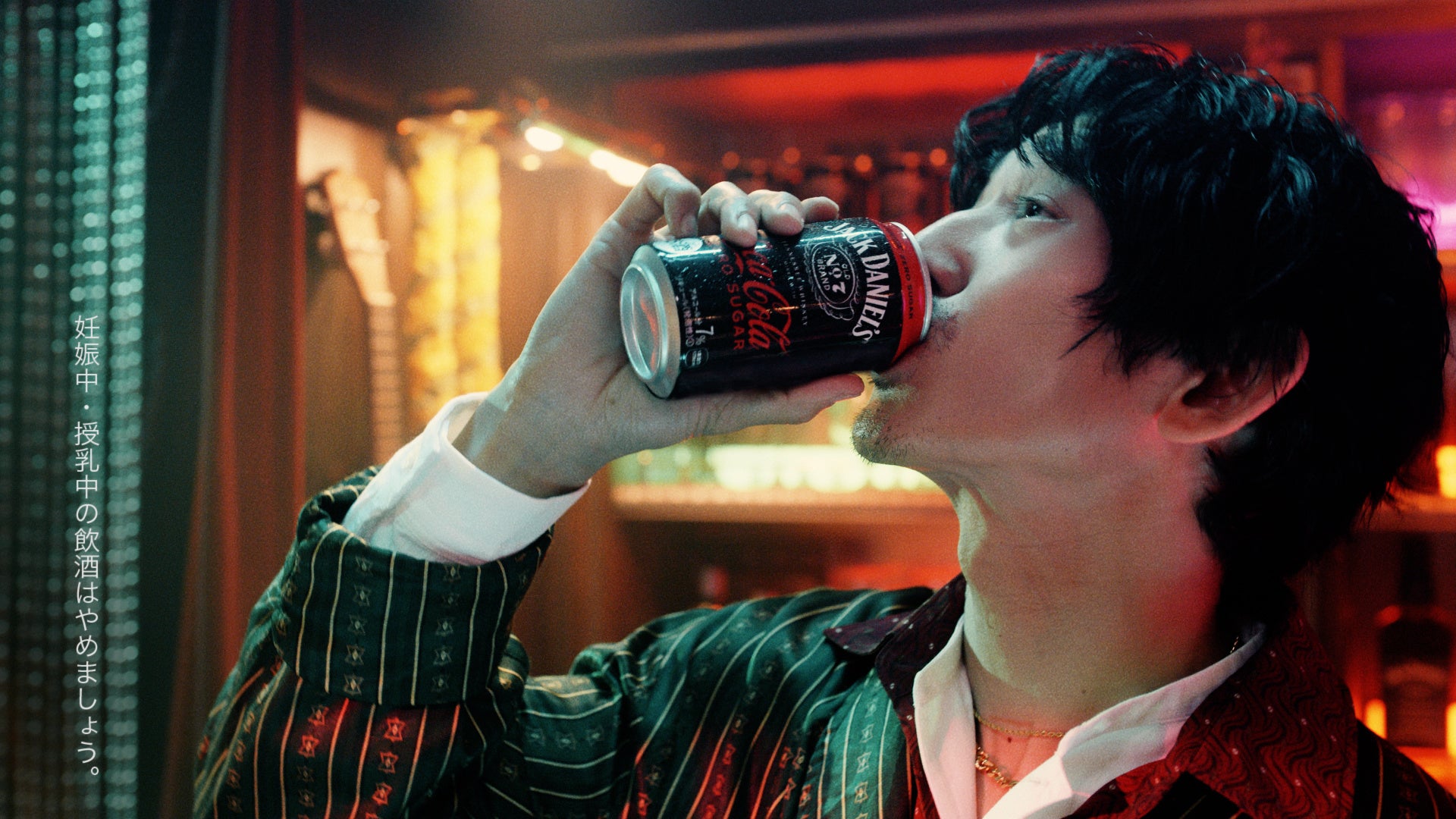 永山瑛太さんには「スナックホンノウ」のマスターという設定に挑戦いただき「ジャックダニエル&コカ・コーラ」をきっかけに自分を解放して楽しむ爽快感が伝わってくるようなCMとなっています。また、大人の隠れ家のような、色鮮やかに飾られたスナックの舞台セットにもご注目ください。