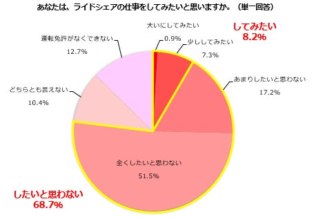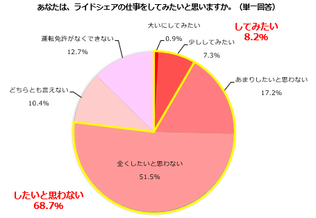 ライドシェアの仕事、してみたいと思う? 「思わない」68.7%「してみたい」8.2%