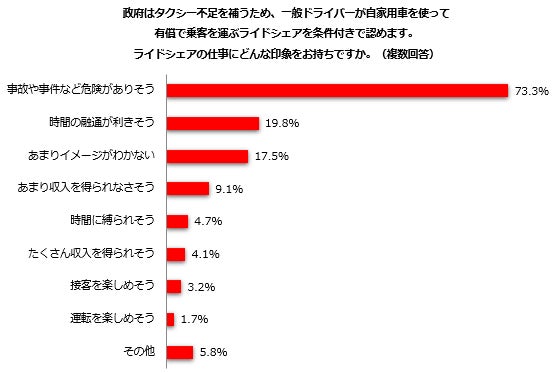 1.ライドシェアの仕事は「事故や事件など危険がありそう」73.3%