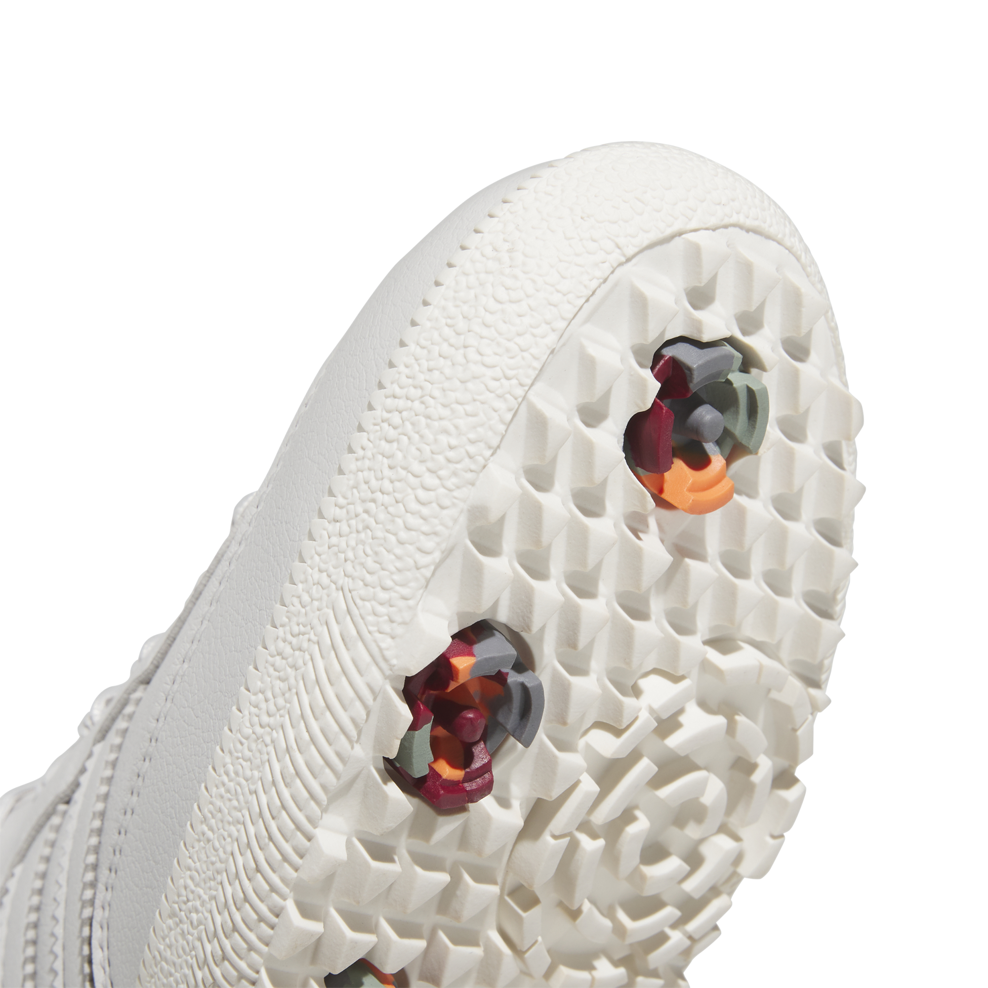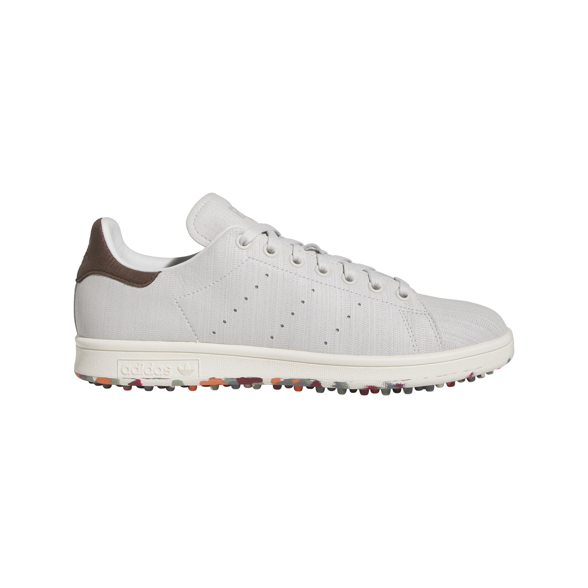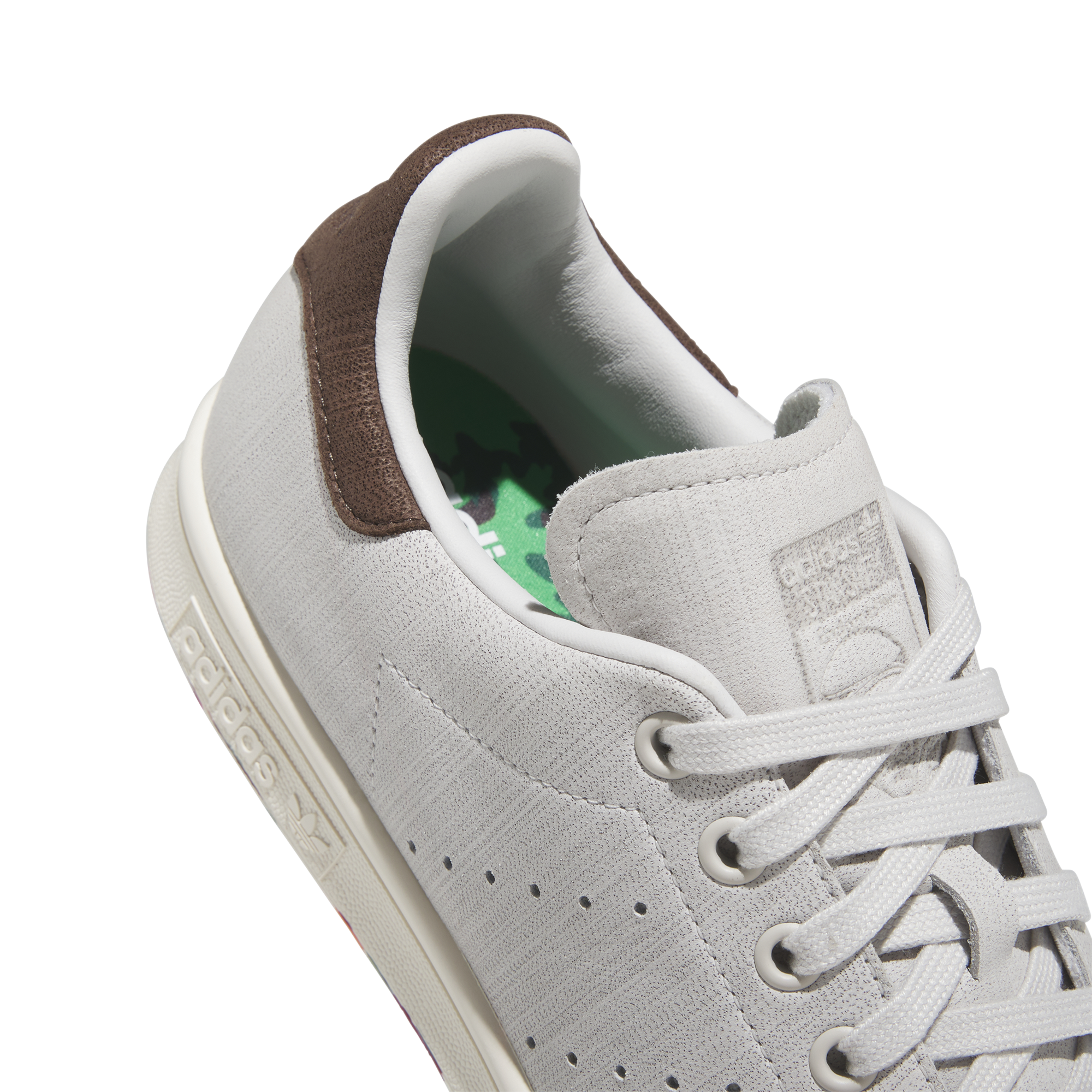 リサイクル素材のウールニットアッパーで作られたスタンスミス ゴルフは、2021年に初めてお披露目されました。テニスシューズが持つ安定性をゴルフに応用しつつ、ゴム素材でできたADIWEARアウトソールはスタンスミスにインスパイアされたスパイクレスタイプで、ゴルフに必要なグリップ力を備えています。ミッドソールにはEVAでできたクッショニング素材を搭載しており、ラウンド時の快適性を高めています。