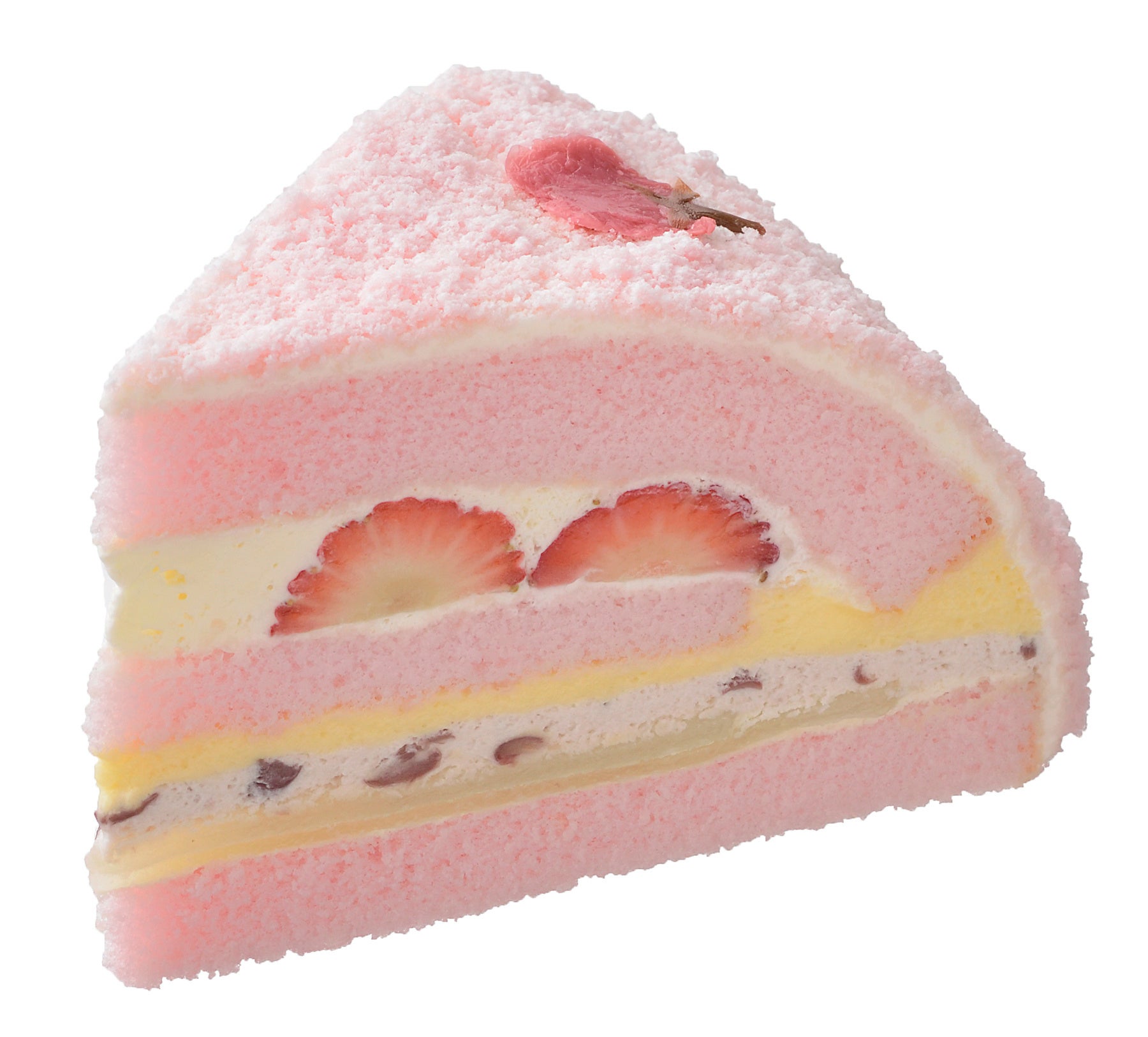 ふわりと桜が香る桜風味クリームと、粒あんクリーム、甘ずっぱい苺をふわふわの桜風味スポンジでサンド。求肥のもちもち感を食感のアクセントに、カスタードでまろやかなコクをプラスしました。桜の香りと和素材が奏でる春のハーモニーをお楽しみください。