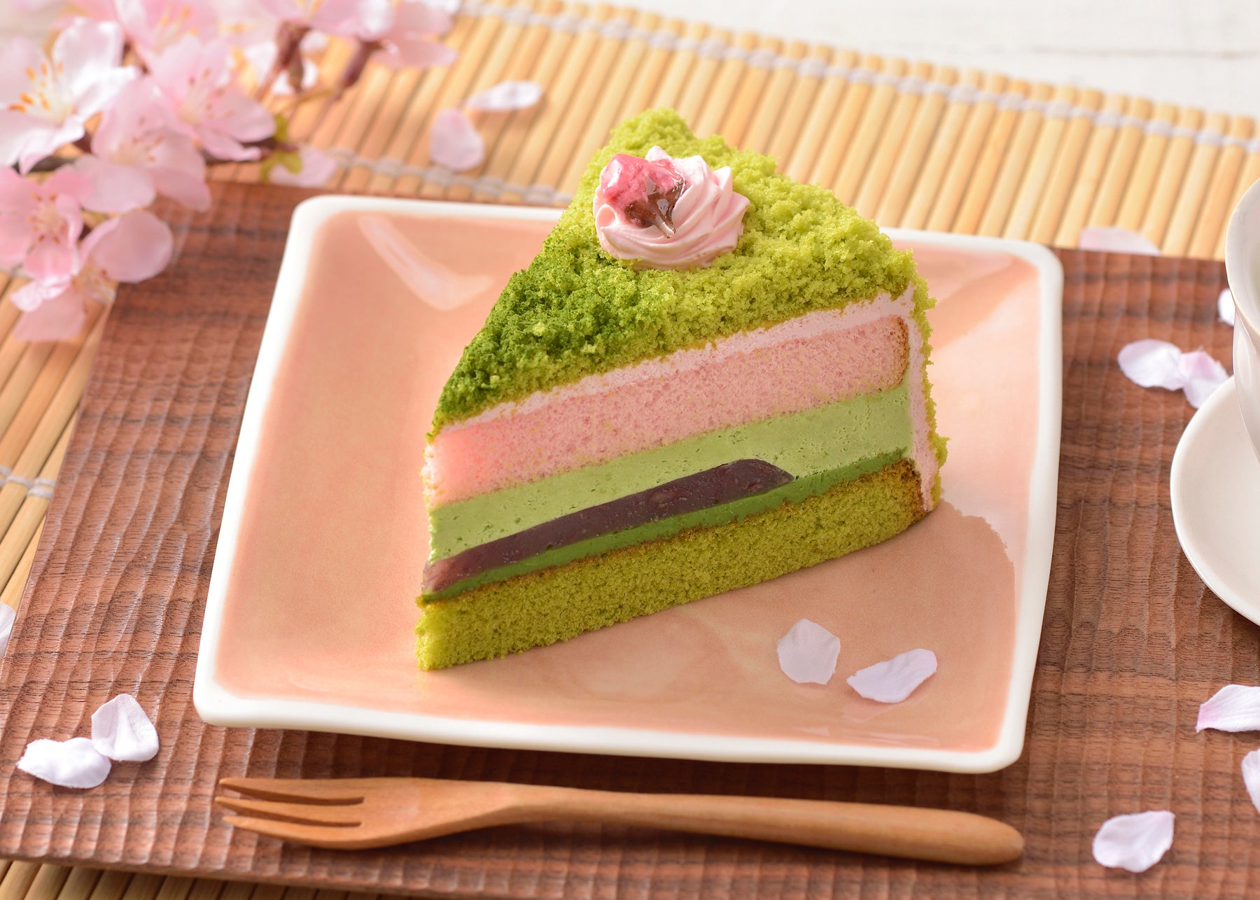 抹茶の豊かな香り&旨味と、ほのかに香る桜の風味が絶妙に調和する春限定のショートケーキです。抹茶クリーム、抹茶ガナッシュ、桜風味スポンジと抹茶スポンジを重ねて、食感と味わいのアクセントに水ようかんをサンドしました。春の訪れを、抹茶と桜のスイーツでお楽しみください。