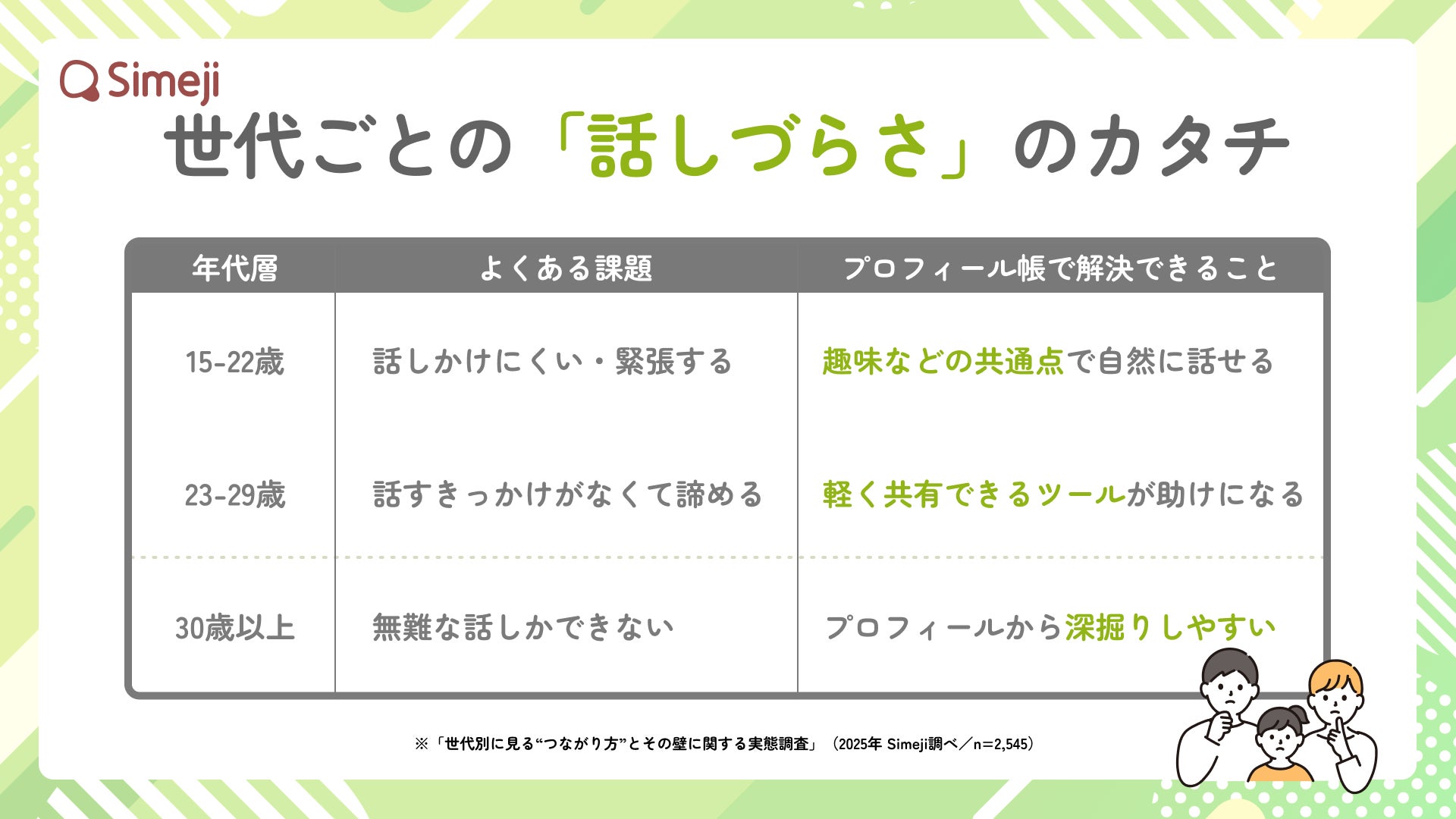 Simejiの調査では、話しかけづらさの背景には世代ごとの違いがあることも見えてきました。
