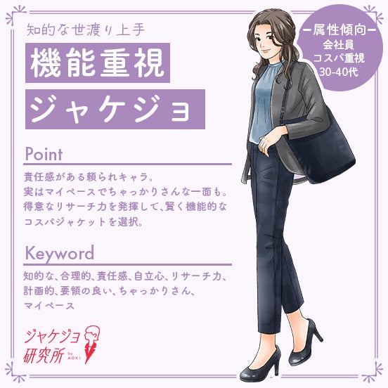AOKIが運営する「ジャケジョ研究所」が、女性の最適なスーツ選びをサポートする『ジャケジョクラスタ』を開発!~仕事やライフスタイルの価値観などから、6つのクラスタを可視化~