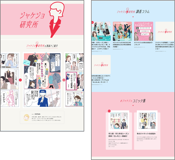 ジャケジョ研究所では、ジャケットを着用する女性「#ジャケジョ」の“身体と心のスイッチ”となるファーストチョイスを目指して、商品情報はもちろん、日々の支えになるようなお役立ち情報を発信してまいります。