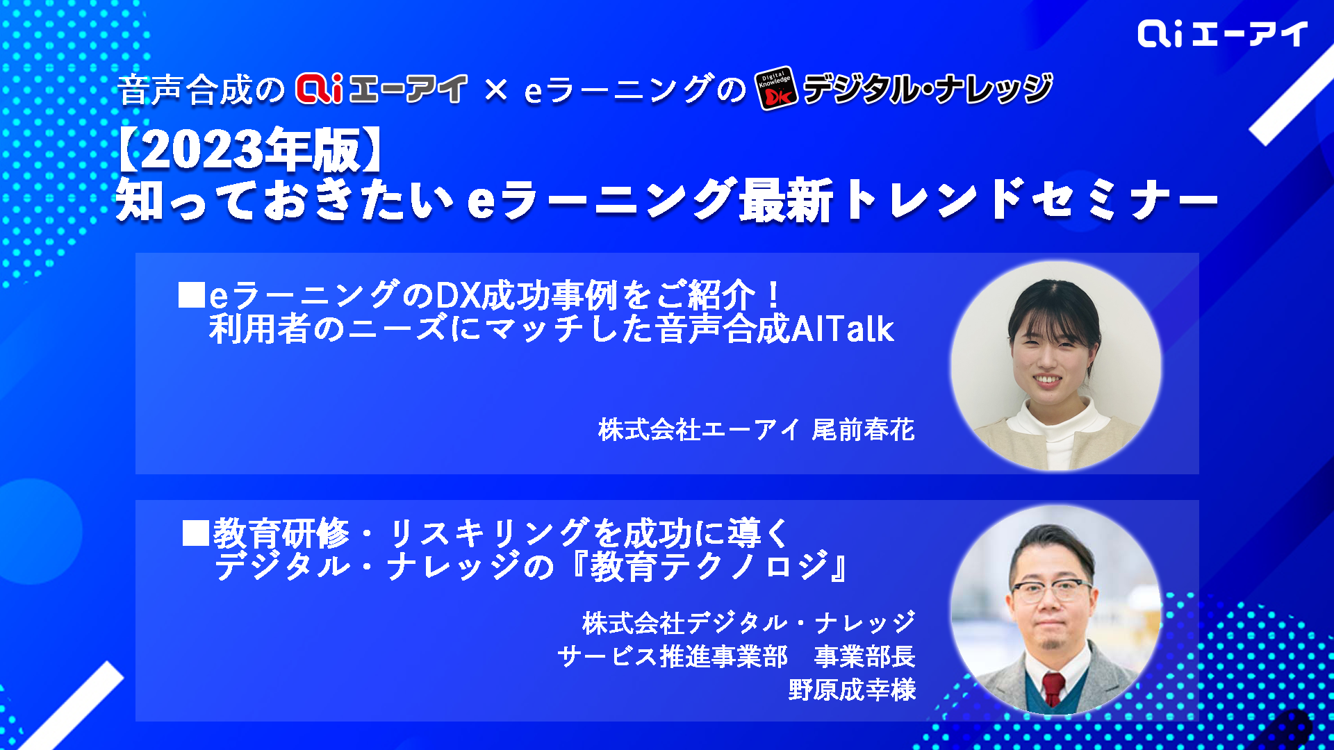 eラーニング最新トレンドセミナー《3/14オンライン開催 本日締切》eラーニングのデジタル・ナレッジ×音声合成エーアイ