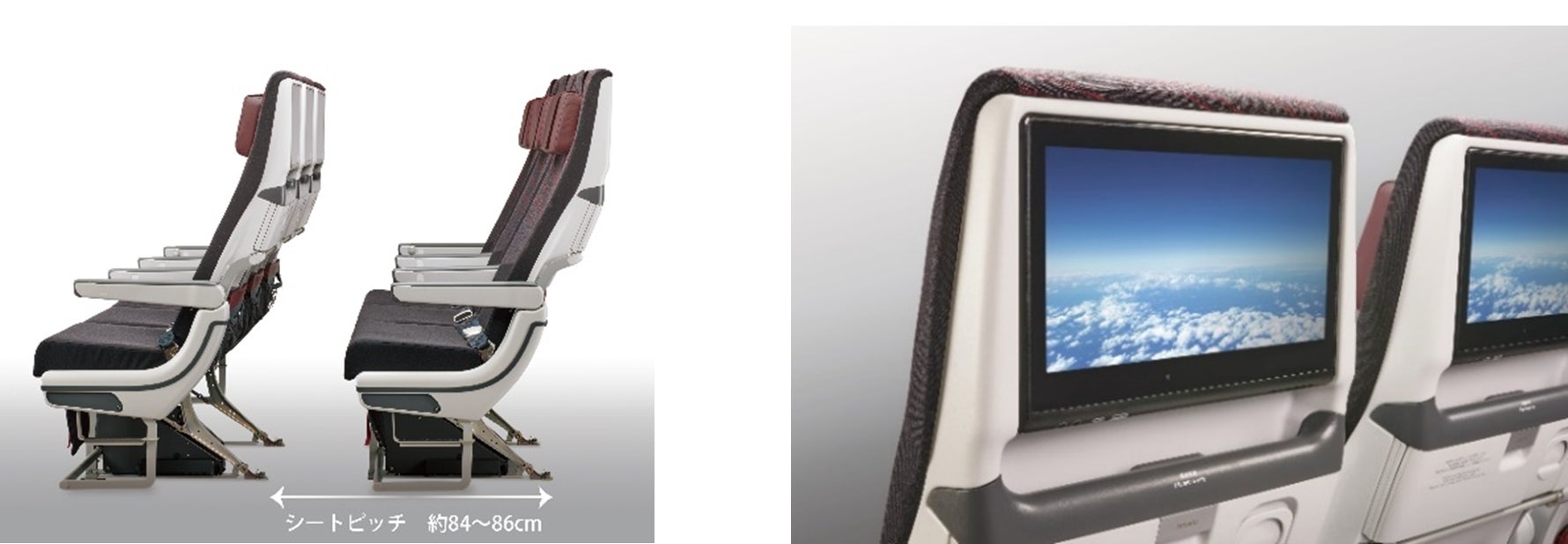 SKYTRAX社の「ベスト・エコノミークラス・エアラインシート」を5期連続受賞している広い足元空間と、快適な座り心地をさらに磨きをかけました。