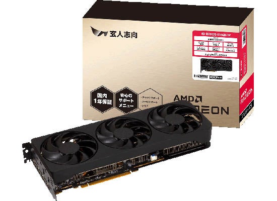 RD-RX9070XT-E16GB/TP | 玄人志向 Radeon RX 9070 XT トリプルファン搭載 グラフィックボード