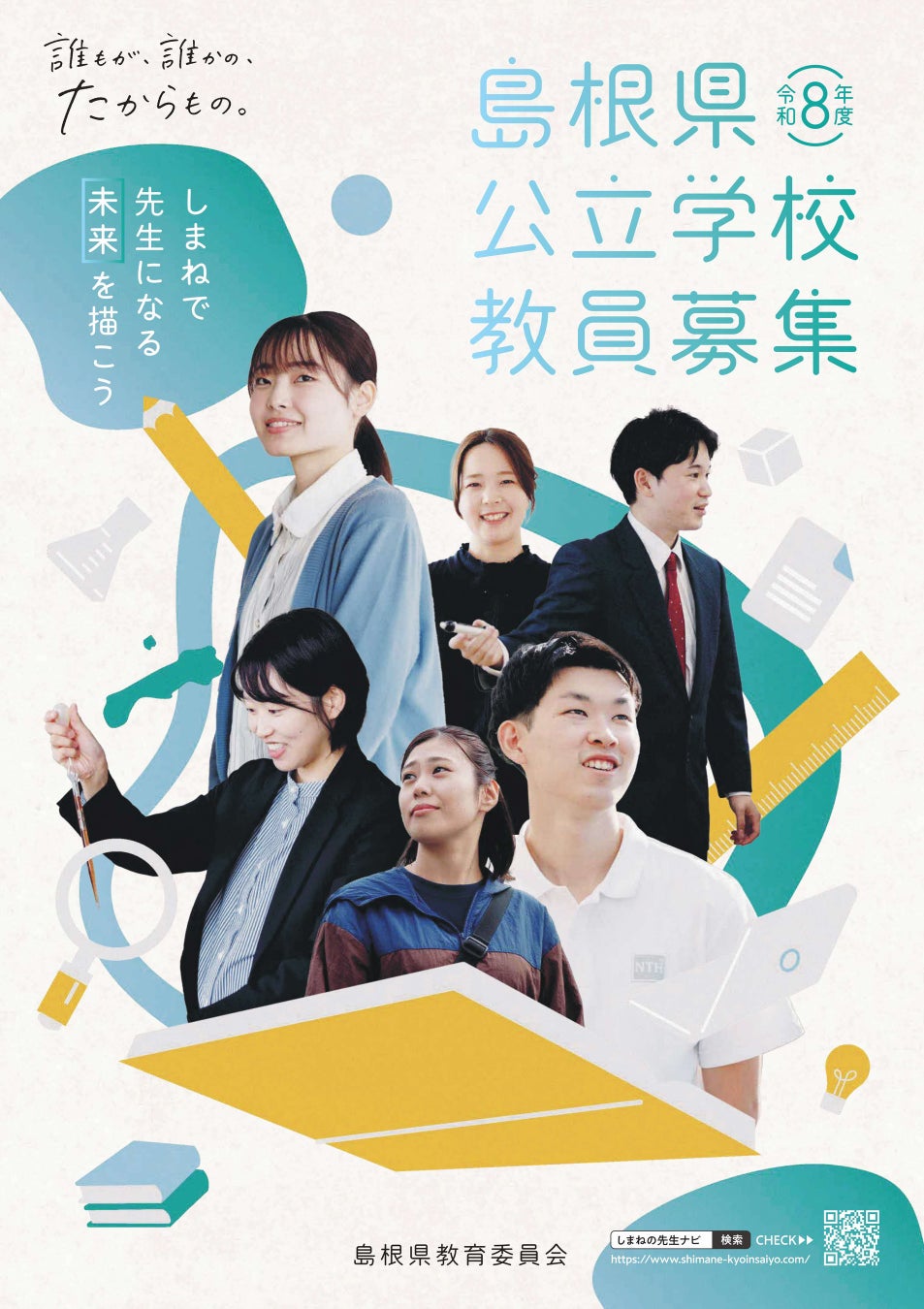 島根県教育委員会では、下記のとおり、令和8年度(令和7年度実施)島根県公立学校教員採用候補者「一般選考試験」を実施します。