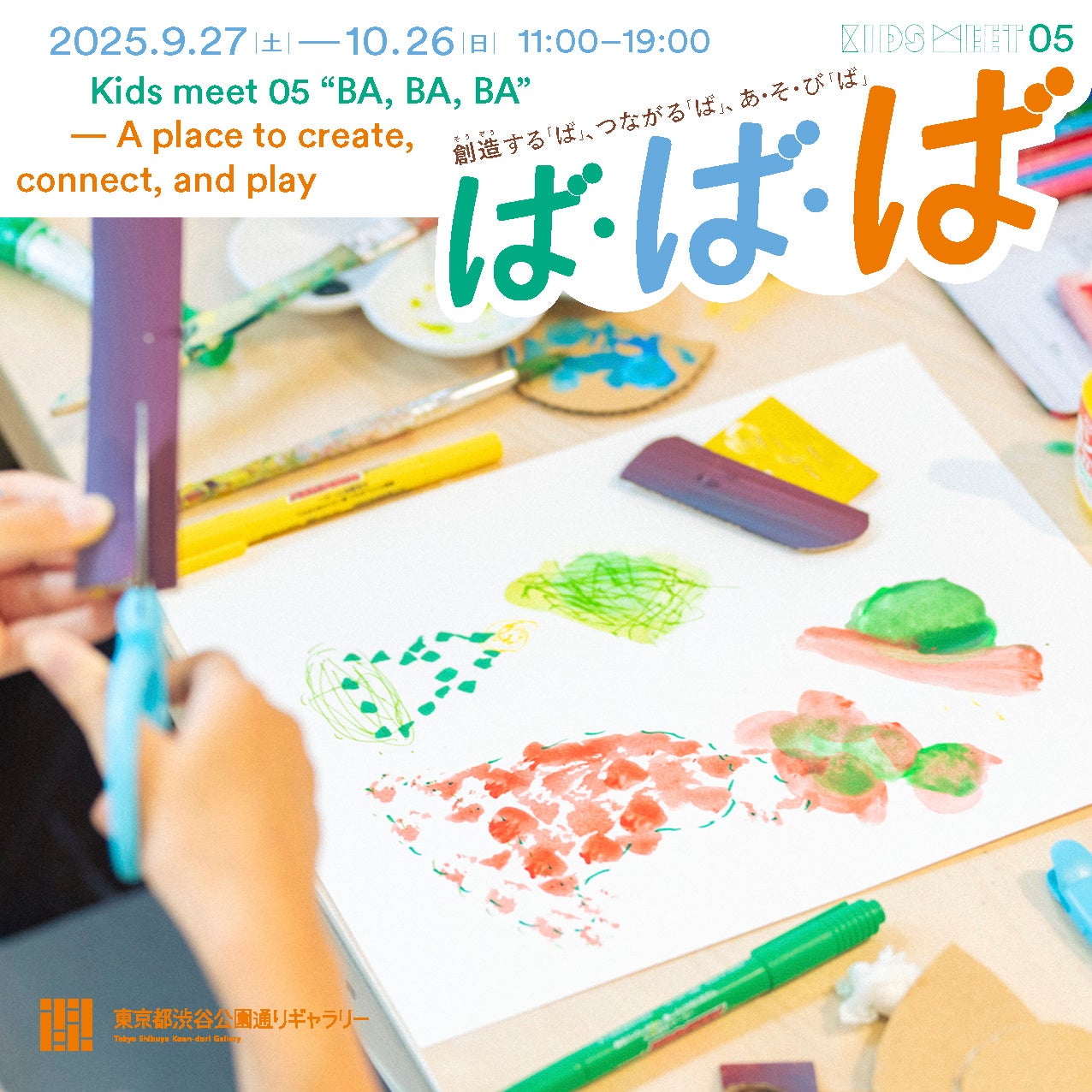 東京都渋谷公園通りギャラリーは2025年9月27日(土)~10月26日(日)の期間、子どものプログラム Kids meet 05「ば・ば・ば」を開催します。Kids meet 05ではアートスペース「ば・ば・ば」を立ち上げ、創作する「ば」、出会った人とつながりをつくる「ば」、そして子どもたち(大人たち)のあそび「ば」になることで、これら創造の場が人々の居場所になることを目指します。