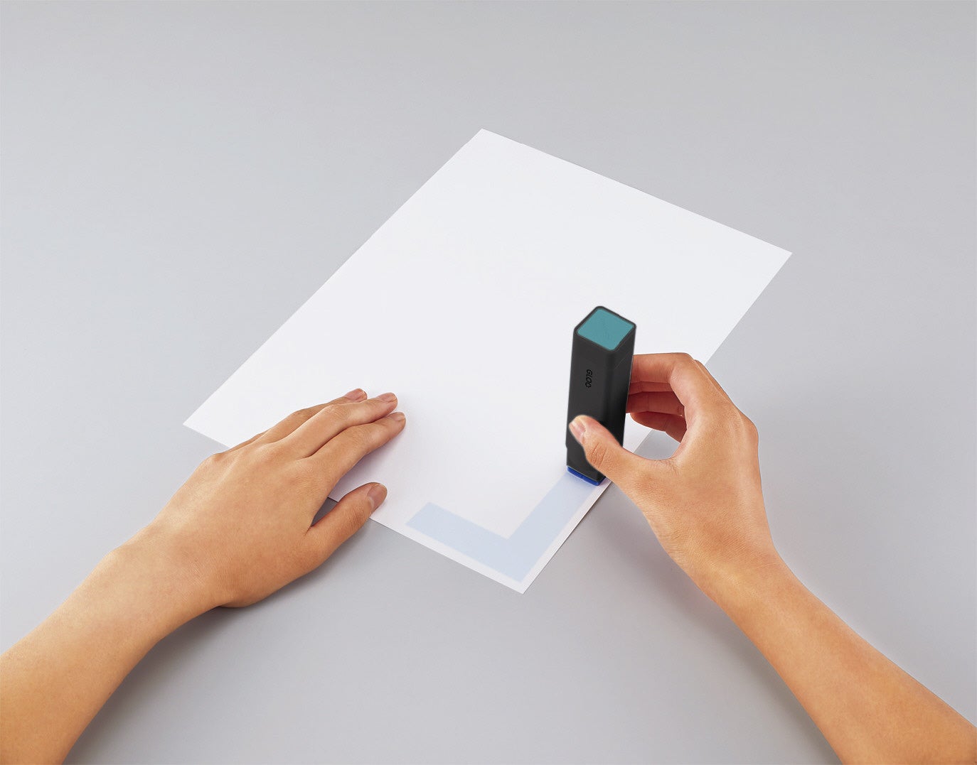 塗布面が四角いため、紙の角からはみ出しにくく、端までしっかり塗ることができます。また四角い形状で転がりにくく、デスクから転がり落ちてしまうことを防ぎます。