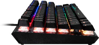 本製品は、Kailh製のRedスイッチを採用しており、一般的なキーボードを上回る5000万回以上の耐久性と素早い入力を実現しています。テンキーレス仕様の本体は、キーボードのサイズを小さくできマウスの移動スペースを広くして、ゲーム中でもマウス操作の邪魔になりません。またケーブルは着脱式になっており、収納時に邪魔にならず快適に持ち運ぶことが可能です。