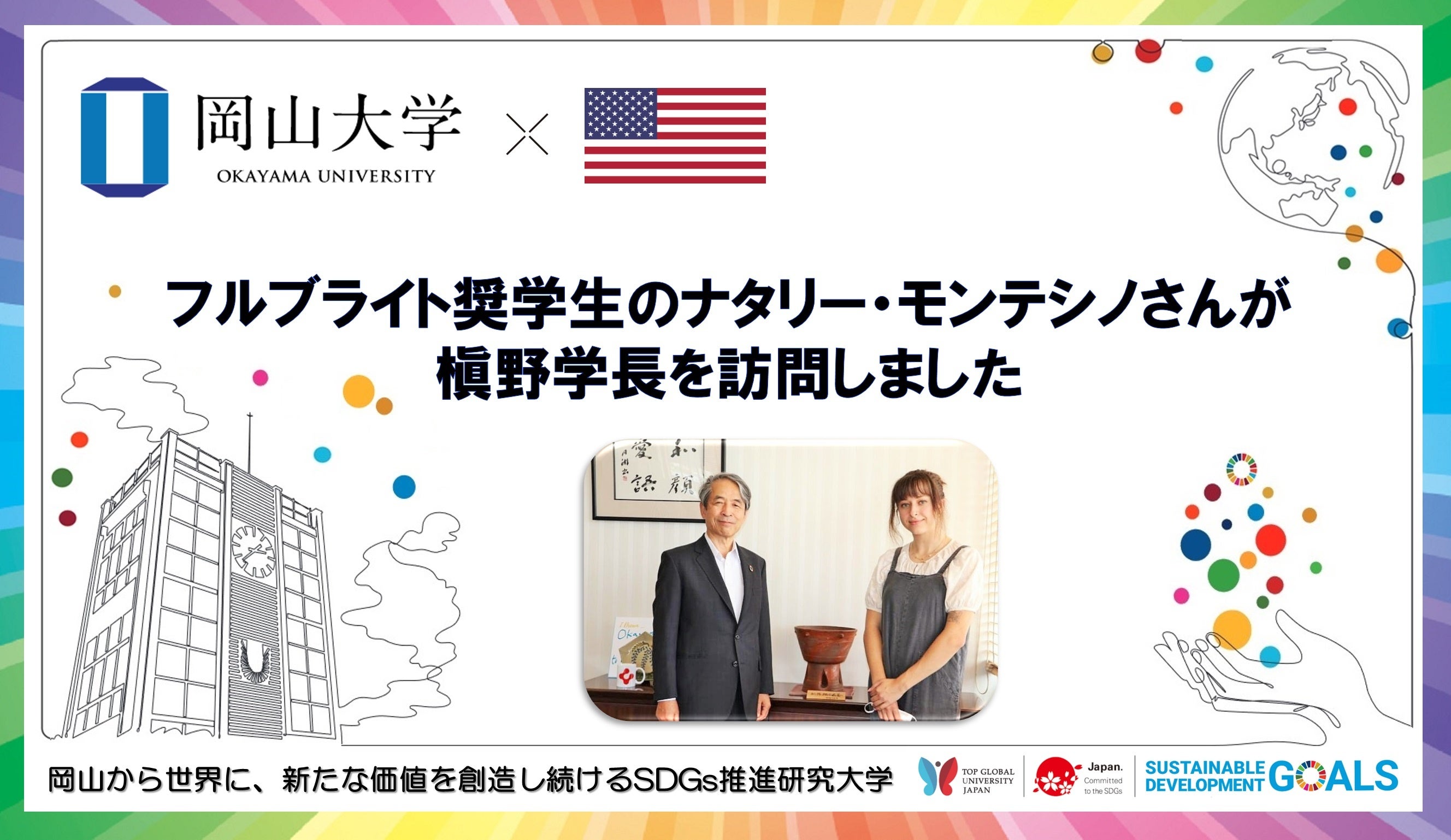 【岡山大学】フルブライト奨学生のナタリー・モンテシノさんが槇野学長を訪問しました