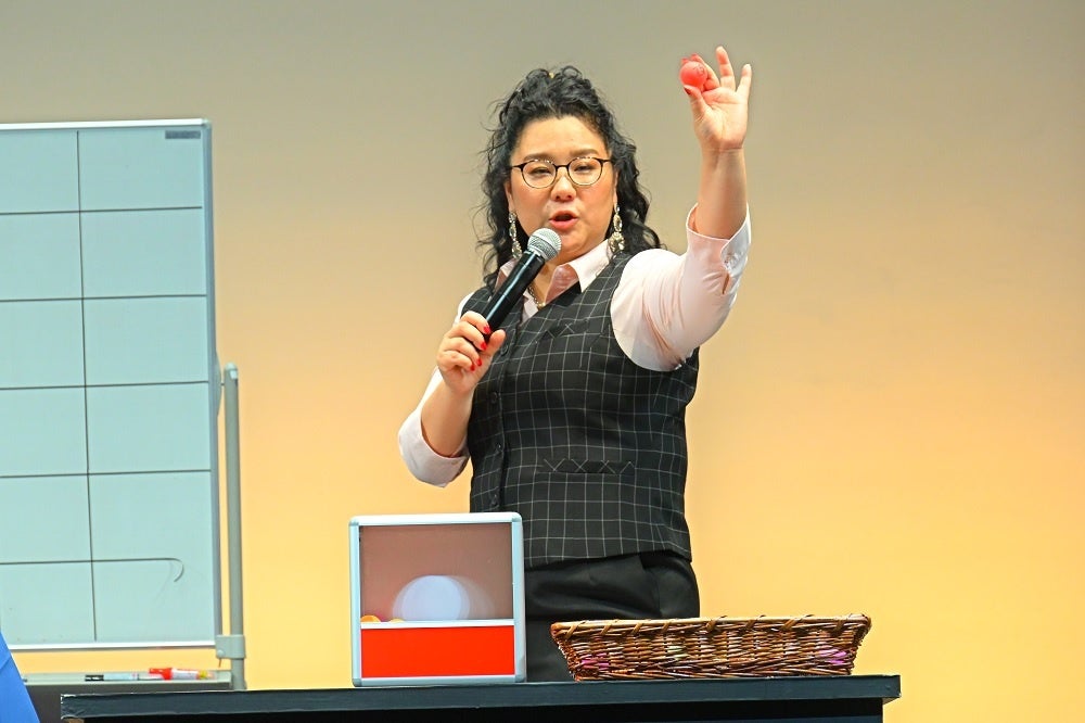 そして急遽、サプライズで発表された追加のビンゴ景品は、秋田米の新品種「サキホコレ」1年分に、スー美香コンビとともに行くプロレス観戦ツアーの参加権。なかなかビンゴが出ない・・・という展開も重なり、それならばもう少し続行し、ビンゴが多数出たところで全員がツアー参加券を獲得するという興奮に会場が沸く一幕となりました。そしてその頃、配信画面に映し出されていたのは、落語家・林家八楽による紙切り芸。堀井美香の強い要望により出演が決定した八楽もまた、困惑を隠せない様子でしたが、そこはやはりプロ。巧みな技を次々に繰り出し、視聴者を大いに楽しませました。