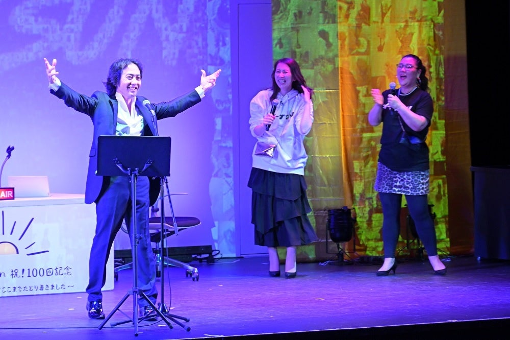 イベントの序盤からは、軽快な音楽にのせオーバーメイツ(ダンスチーム)が登壇。まさかのオープニングに驚嘆と困惑が広がるなか、往年のバブル風ファッションで身を包み、パーソナリティのジェーン・スー(コラムニスト・作詞家)と堀井美香(フリーアナウンサー・ナレーター)が姿を見せると、会場内のボルテージは一気にピークに。