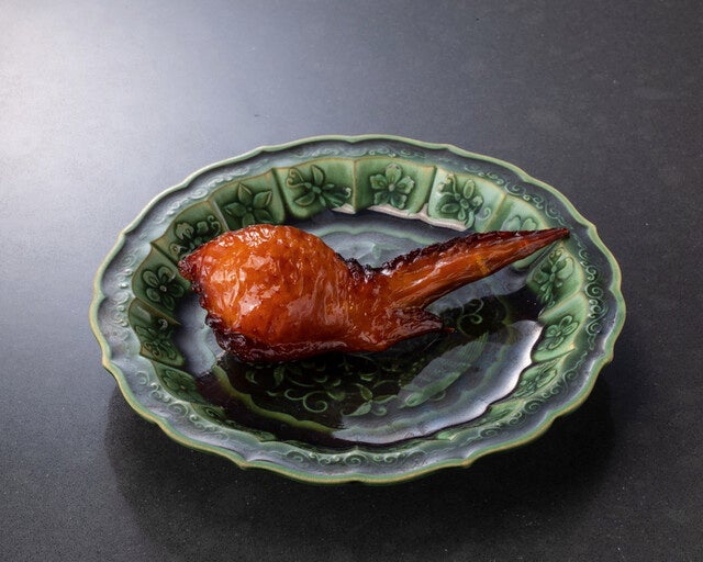 香港では手羽先に糯米を詰めた「糯米焼鶏翼」がポピュラーですが、Seriesではコースの組み合わせとペアリングに合わせ、糯米の代わりにフォアグラを使用。外はパリパリ、中は信玄鶏特有の歯応えとフォアグラの食感が絶妙にマッチした逸品。