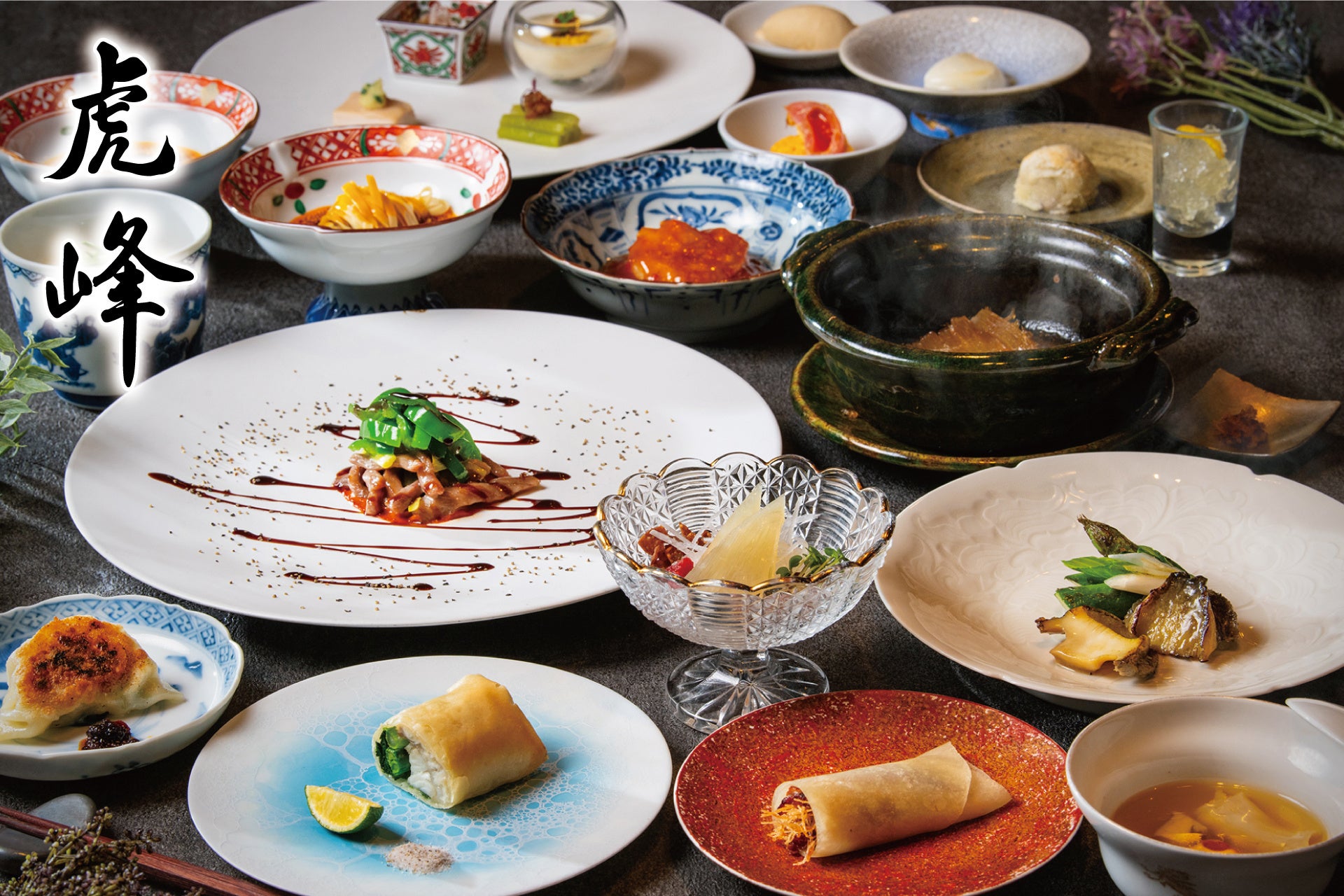 中国では「虎」は才気ある人物に使われる言葉で、「峰」は頂の意味。才気を養い最高峰を目指す想いが込められた店名【虎峰】。当店では中華料理を軸に、和食や中国各地の伝統的な技法を取り入れ、旬の食材の素晴らしさを最大限に引き出せるような料理を少量多皿にてご用意しております。
