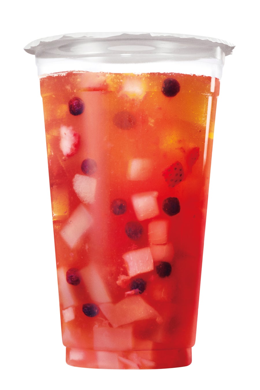 ぷにゅんと食感の粉粿(フングイ)と、ピーチのさわやかな甘さ、ストロベリー&ブルーベリーの甘酸っぱさが重なり、香り高いアールグレイティがより一層おいしさのバランスを引き立てたフルーツティです。