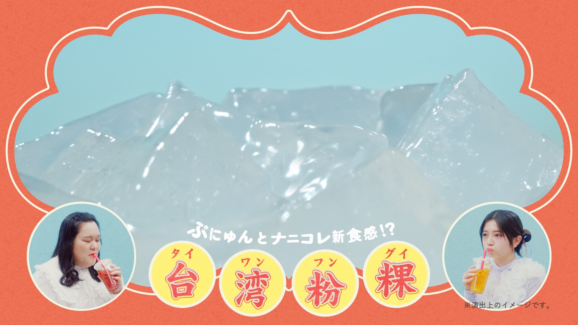 今回の新TVCMは、田辺さんと桜田さんがブランコに乗りながら、新商品『台湾粉粿(フングイ)フルーツティ』に入っている新食感スイーツ「粉粿(フングイ)」をキャッチーに口ずさみながら味わうというストーリーです。