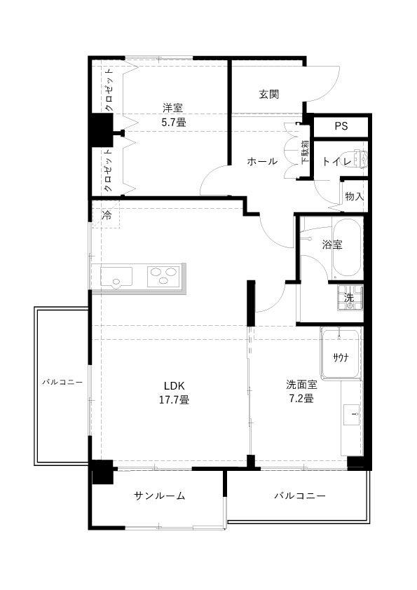 心身のリフレッシュがしたい時、ストレスを解消したい時、健康を意識したい時、自宅にサウナがあれば、毎日が特別で充実したものになると考え、このサウナ付き物件を提供しています。また、石目調のグレーのフロアタイルを採用し、自然を感じるナチュラルなデザインに。