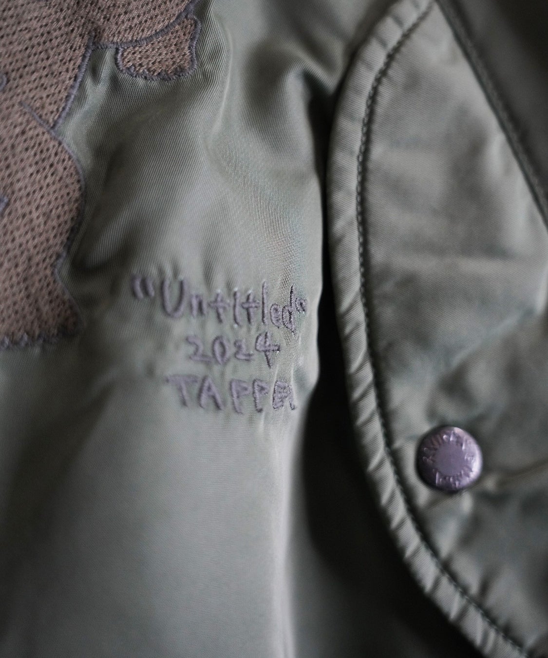 “TAPPEI”のアートワークを“AVIREX”の代名詞的フライトジャケットであるMA-1に大胆に刺繍で落とし込んだ1着。