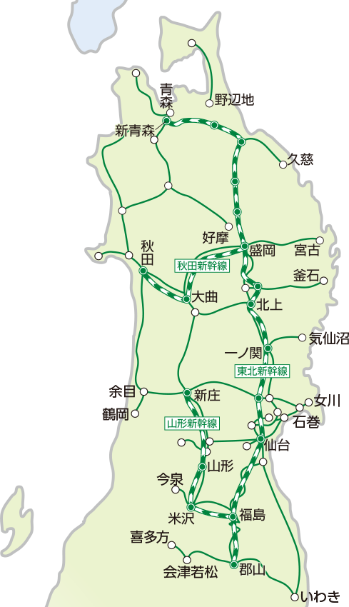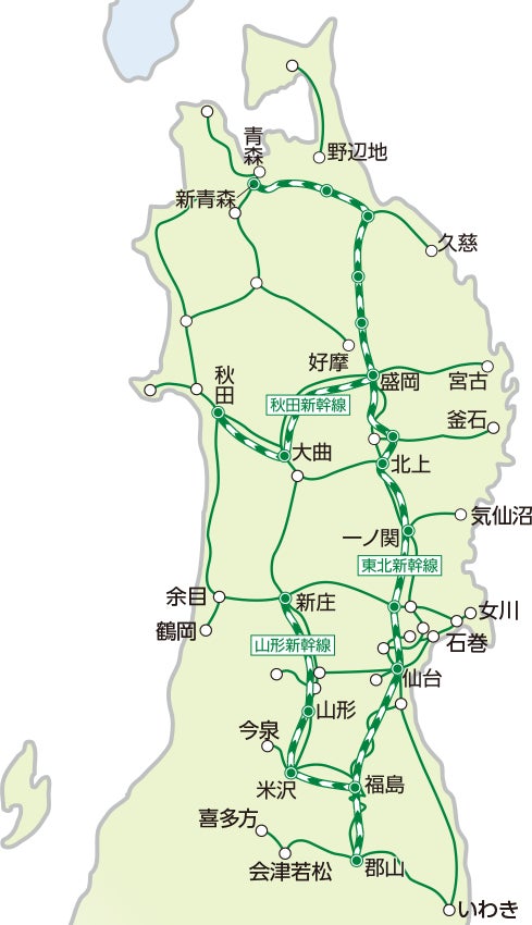 JR東日本の東北エリア(右図エリア)の新幹線・在来線