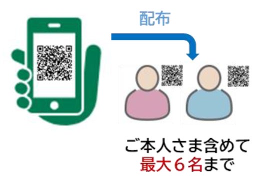お申込みされたご本人と同一行程でご旅行される場合、ご本人を含めて6名までご利用いただけます。なお、ご同行者の乗車用QRコードは、お申込みされたご本人からご同行者へ共有いただく必要があります。