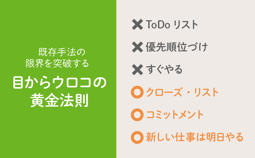 時間管理術として有名な「ToDoリスト」や「優先順位づけ」、そしてできることは「すぐにやる」という考え方とは全く異なった仕事術です。