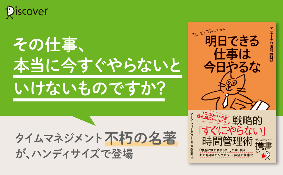 株式会社ディスカヴァー・トゥエンティワン(本社:東京都千代田区、取締役社長:谷口奈緒美)は2022年7月22日に『明日できる仕事は今日やるな マニャーナの法則【完全版】』(マーク・フォースター 著、青木高夫 訳)を刊行しました。