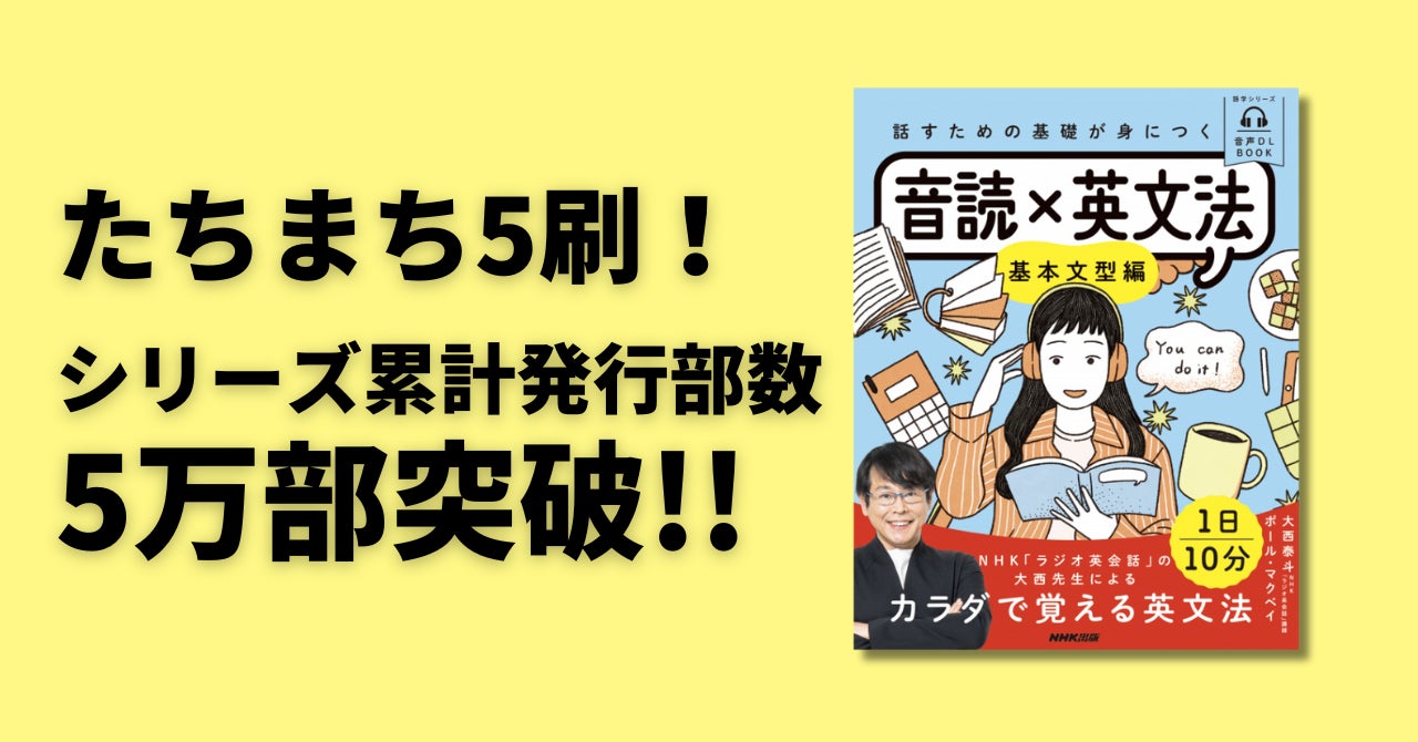 またまた増刷! NHK「ラジオ英会話」講師・大西泰斗先生の『話すための基礎が身につく 音読×英文法 基本文型編』が本日5刷出来。シリーズ全体で累計5万部突破!「ラジオ英会話 5月号」も本日発売!