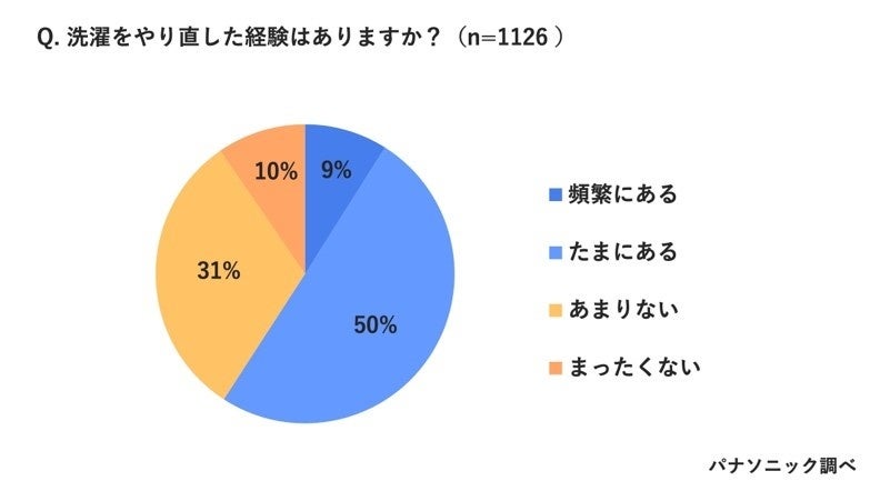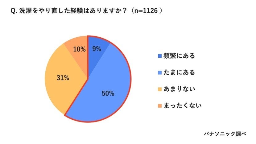 ・90%が「洗濯をやり直した経験がある」…「頻繁にある」9%、「たまにある」50%