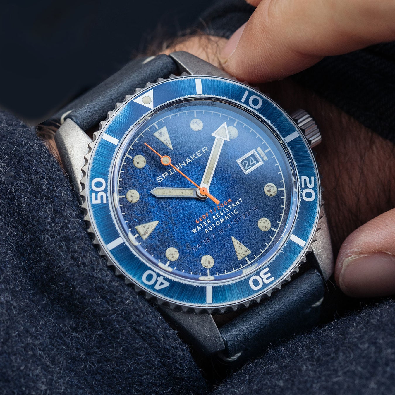 さらに、2019年に広まった「ヴィンテージデザインブーム」と「ダイバーズデザインブーム」を背景にその名は更に広がり、現在ではイタリア・イギリス、フランス、アメリカ、⾹港で展開。年間4万本以上を販売する⼈気ブランドに成⻑しました。世界が注⽬する腕時計『スピニカー』は、2019年10⽉1⽇に⽇本に初上陸。多くの腕時計愛好家やファッショにスタに支持され、話題を集めています。