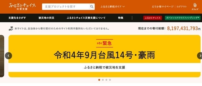 ※ ふるさとチョイス災害支援は、自治体から寄付受付のためのサイト利用手数料をいただいておりません。