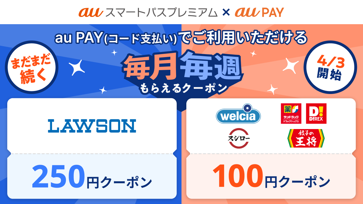 ※「毎週もらえるクーポン」は、au PAY(コード支払い)でご利用いただけます。