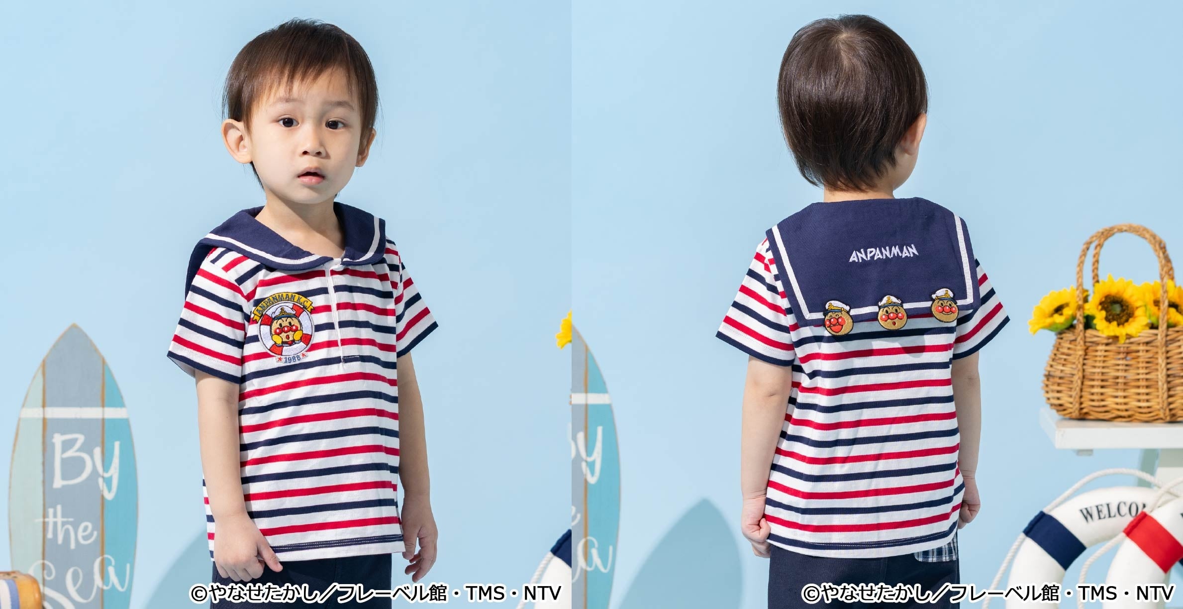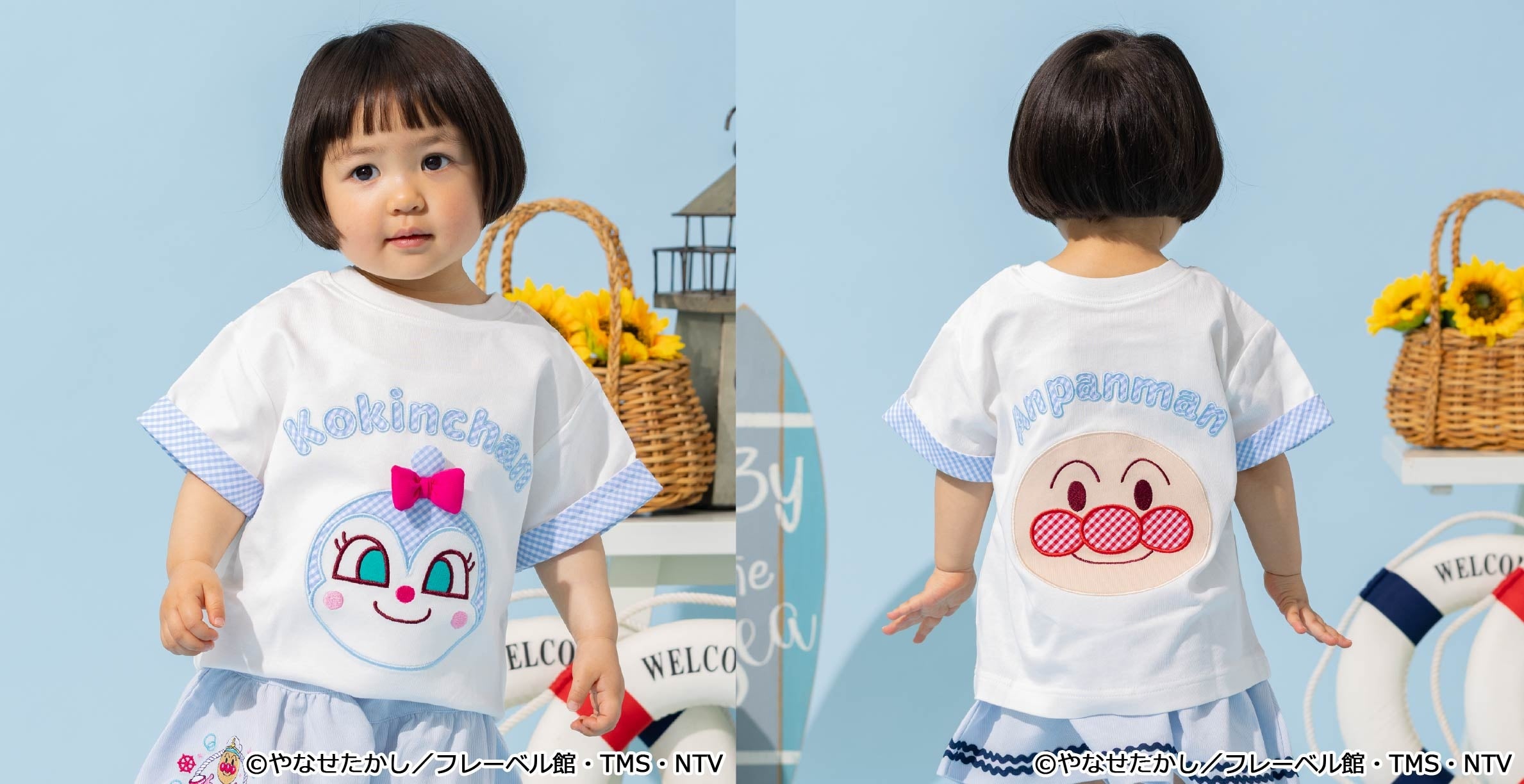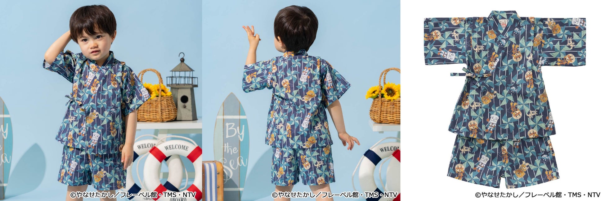 マリンルックのアンパンマンたちがデザインされたTシャツをはじめ、前後2WAYで着られるTシャツ、甚平やスイムグッズなど夏のおでかけがわくわく楽しくなるアイテムが続々登場!