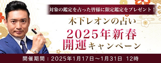 株式会社レンサ(本社:東京都渋谷区、代表取締役:武井哲也)は、2025年1月17日(金)より、運営する公式占いサイト『木下レオンの占い』にて、「2025年新春開運キャンペーン」の提供を開始いたしました。