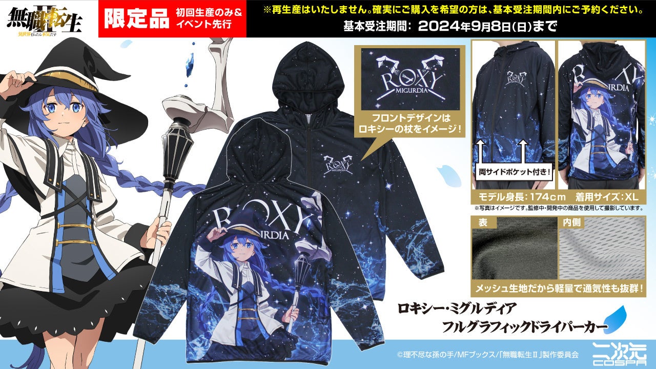 初回生産限定!『無職転生II ~異世界行ったら本気だす~』ロキシーのフルグラフィックドライパーカーが登場!コミケ先行販売も決定!【株式会社コスパ】