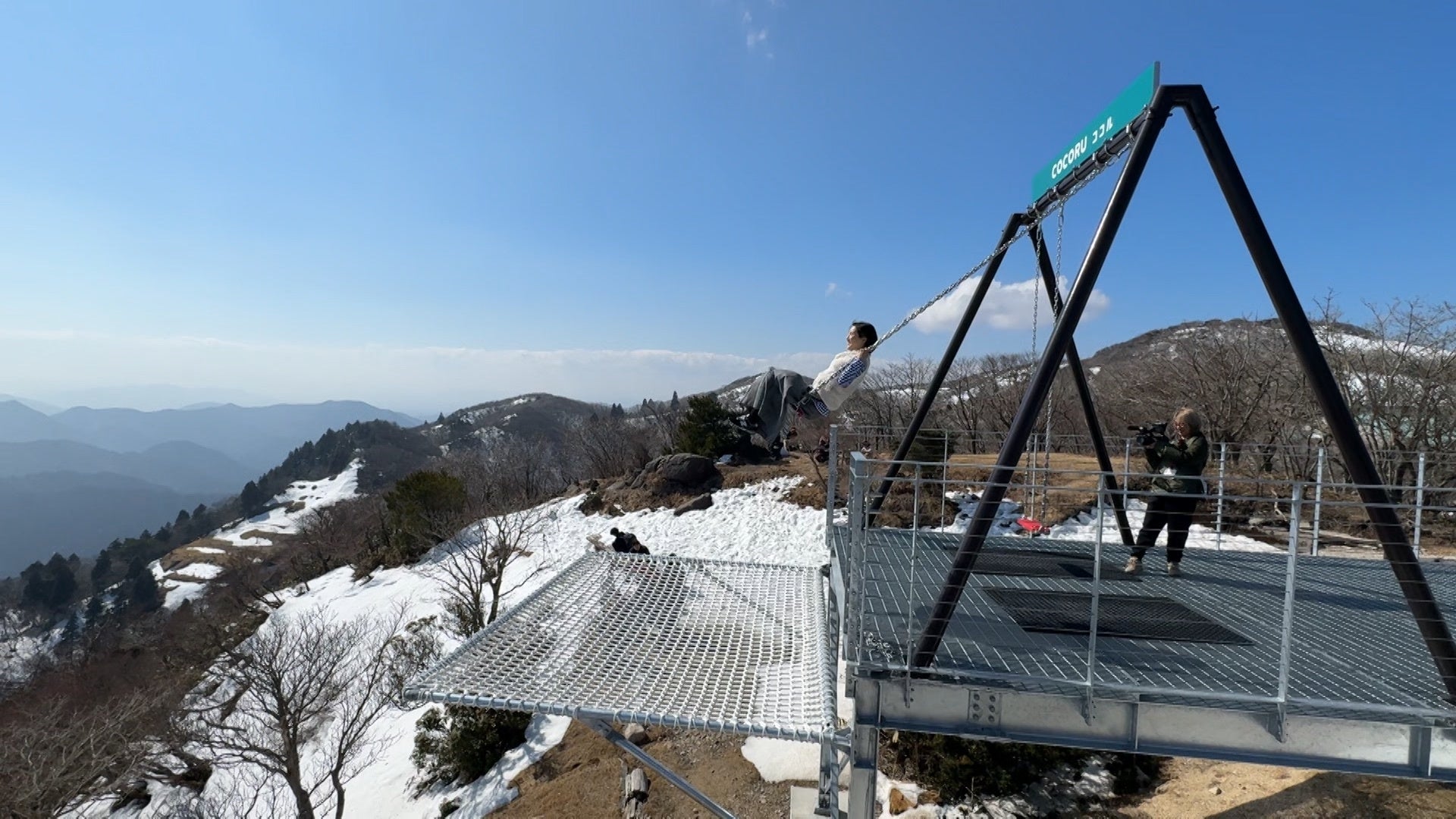 列車は前編最初の目的地、菰野町の湯の山温泉駅へ到着。ここで水野が、一緒に降りたお客さんにまさかのサービスを披露する。ロープウェイに乗って、山上公園へ。空へ飛び出しそうなブランコを“ガチ漕ぎ”する姿に、礼二も「めっちゃこいではるねん」と大ウケだ。